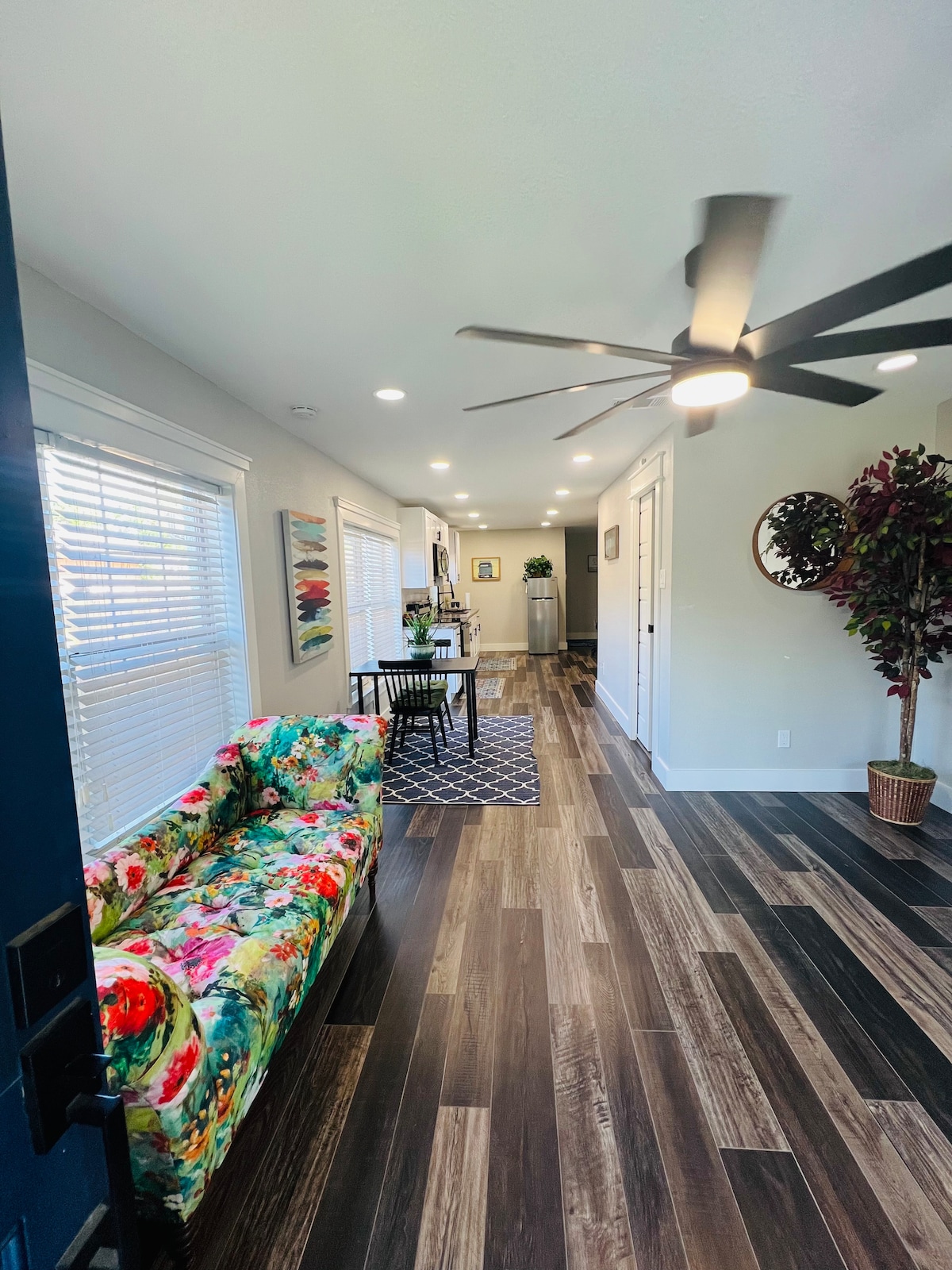 PRIME LOCATION- about 50 Tasty Restaurants and Fun Bars and all Holiday shopping at your door! FREE PARKING where securing a parking spot can be challenging! The Driveway is for all for You! 10 min to downtown, Featuring a calm and cozy bedroom. Premium Matress, Darkening shades- perfect to rest and recover from discovering the city. . Selfcheck-in. Kitchenette. Dedicated workspace. Smart TV. Sofabed for 2 more guests. Full coffee bar. Fast Internet. Pets welcome. Cheers 🥂 !