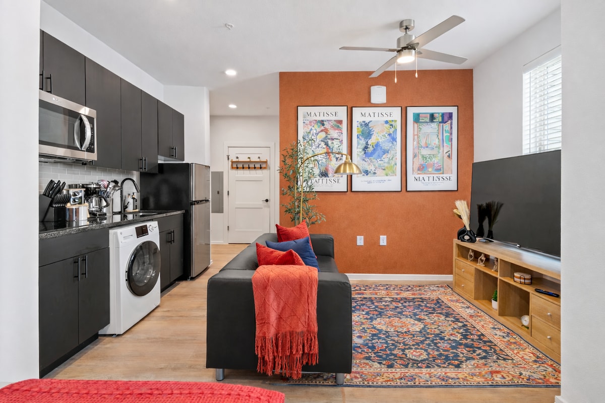 Relax in this stylish 1BR apt near Bishop Arts District and Downtown Dallas. City is full of award-winning restaurants, bars, shopping malls, historic landmarks, and attractions. Adventure through the Dallas region easily from this prime location. Once you are ready to relax, retreat to this comfy apartment. ✔ Fully Equipped Kitchen ✔ Comfortable 1 Bedroom w/ Queen Bed ✔ Two 4k UHD 55in Smart TV's ✔ Office Workspace ✔ High-Speed Wi-Fi ✔ Free Reserved Covered Parking Learn more below!