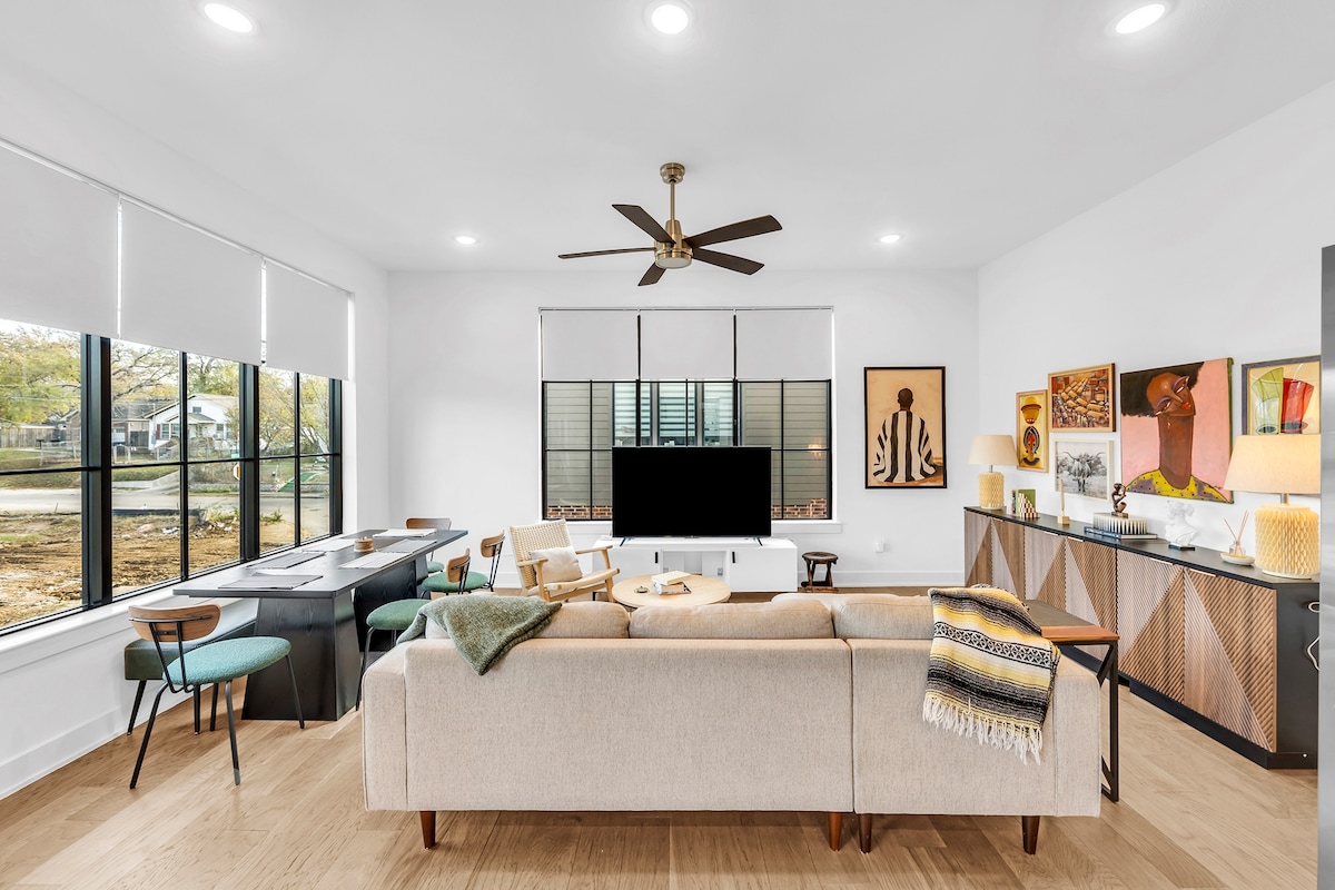 Welcome to our stylish Airbnb nestled in the vibrant Bishop Arts District! This contemporary space combines modern design with comfort. Relax in the open living area, enjoy the fully equipped kitchen, and unwind in the tranquil bedroom. ∙ Two 55- inch TVs in living room and bedroom ∙ 300/300 Fiber optic high speed internet Step outside and explore the neighborhood's eclectic mix of restaurants and bars. Experience the best of Dallas in this chic urban retreat.