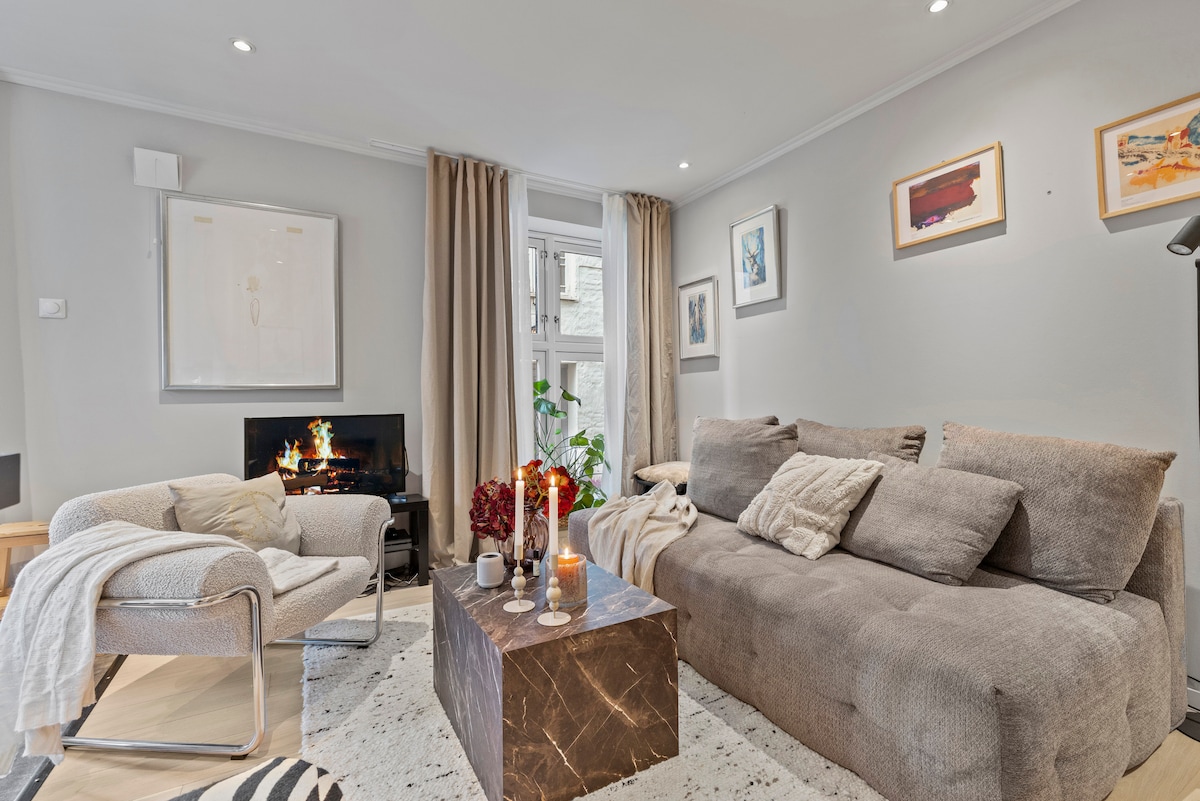 Stay in our modern apartment in the prestigious Posthallen, right in the heart of Oslo. This newly renovated gem features a cozy mezzanine with a queen-size bed and a comfortable sofa bed in the living area. Enjoy a spacious living room, fully equipped kitchen, free Wi-Fi, and a 98-inch TV for a cinematic experience. The apartment is perfectly located near the best of Oslo - restaurants, shops, and major attractions. Experience modern and convenience in one of Oslo’s most renowned buildings.