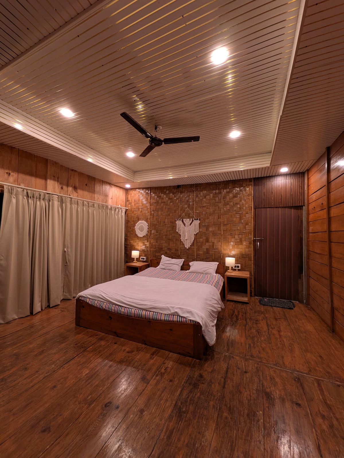 Baahor Ghar is 10 minutes away from the Agratoli Range (Eastern), 15 minutes from Kohora (Central), and 30 minutes from the Bagori (Western) range. We have our Jeep and can take you to any Range of your preference. The house is less than 100 mts from the main highway. This place is made mostly from Bamboo and was inspired by Bali architecture. 2 rooms have a split AC in them as well! The entire house is fully sealed and you do not have to worry about lizards, insects, or even mosquitoes.