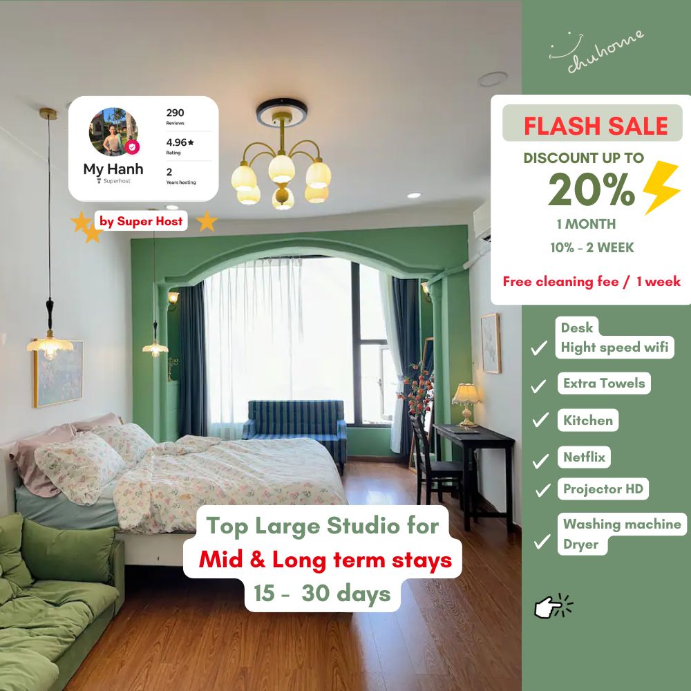 ✦Prime Location: in the heart of the city, Reunification Palace, Opera House, Saigon Central Post Office, City Hall, Book street, Ben Thanh market,Art Museum...just a few minutes walk ✦Comfort: spacious studio, a soft mattress, king-size bed, air conditioner, private balcony&large kitchen window-full of morning sunlight ✦Bed Linen: freshly changed for every new guest ✦Convenience: 24-7cafes,restaurants, bars,ATM,laundry,convenience stores nearby ✦NO LIFT:a good chance to stay fit💪(at floor 4th)