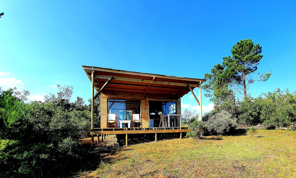 Secluded Cabinsituated in Garden Route National Park Birdsong Hideaway is a private, solar-powered retreat in the Garden Route National Park, perfect for couples, birdwatchers and nature lovers. Surrounded by coastal fynbos and abundant birdlife, this peaceful escape offers privacy, golden winter sun and spectacular sunsets. Beaches and scenic walks are nearby. Relax on the deck, enjoy your private gas BBQ, and unwind to the sound of birdsong.