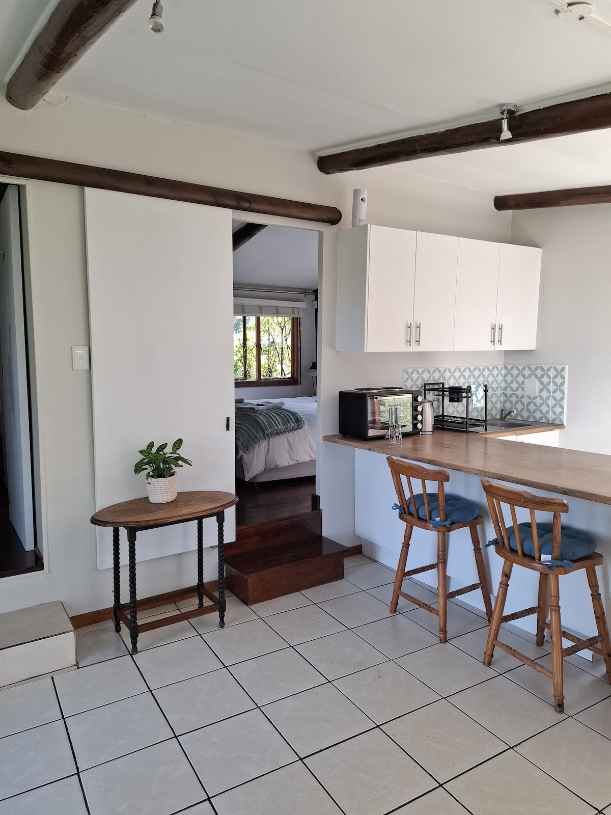 This stylish newly renovated private & relaxed cottage with solar power is a perfect location for families or couples wanting to experience all that the Garden Route has to offer. Situated on the Bitou River just 6klm’s from Plettenberg Bay. Known for its bird life, cycling & running trails & just far enough out of town to experience a slower pace of living. A 5 or 10 minute drive to our nearest world renowned wine estates & multiple blue flag beaches to choose from.