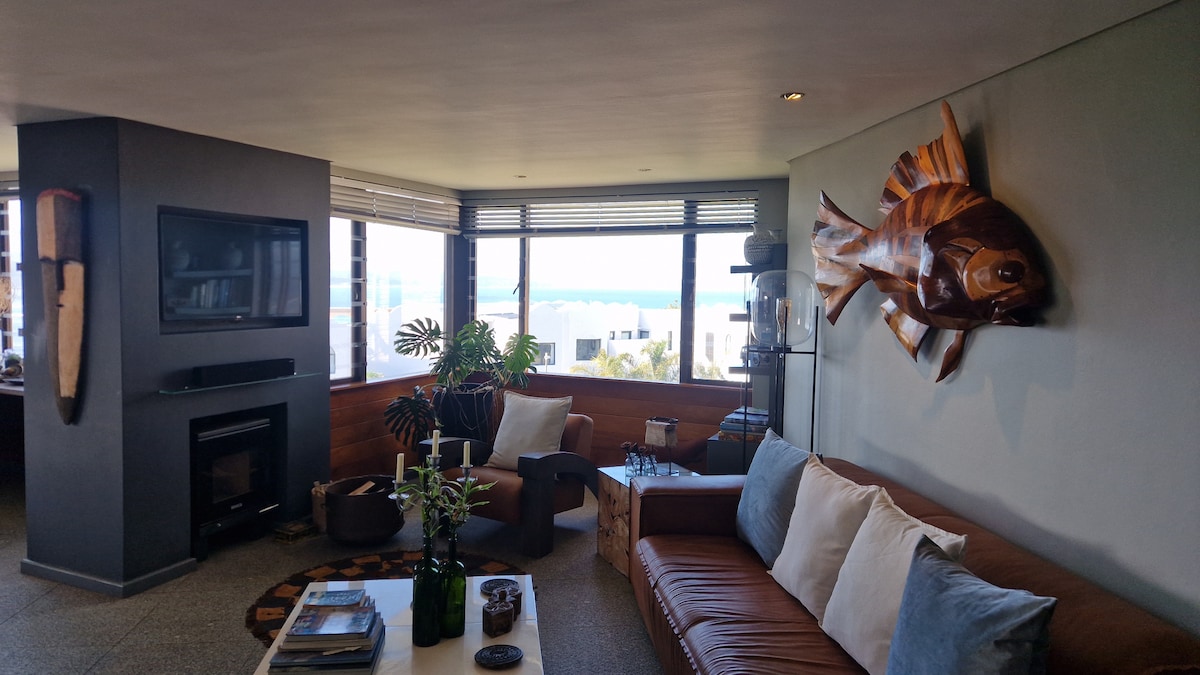 Ocean-view family retreat on Fisherman’s Walk, Brenton-on-Sea Rise to ocean light on the top-floor social level or sip sundowners on the wraparound deck. After beach days, unwind downstairs with a movie night in the cozy lounge. Misty Cliffs is a bright, two-level home nestled between Milkwood trees designed for both short getaways and longer stays. Sunlit, two-level home with wraparound decks, braai patio, and battery backup. Steps from Fisherman’s Walk with sweeping cliff-to-beach views.”