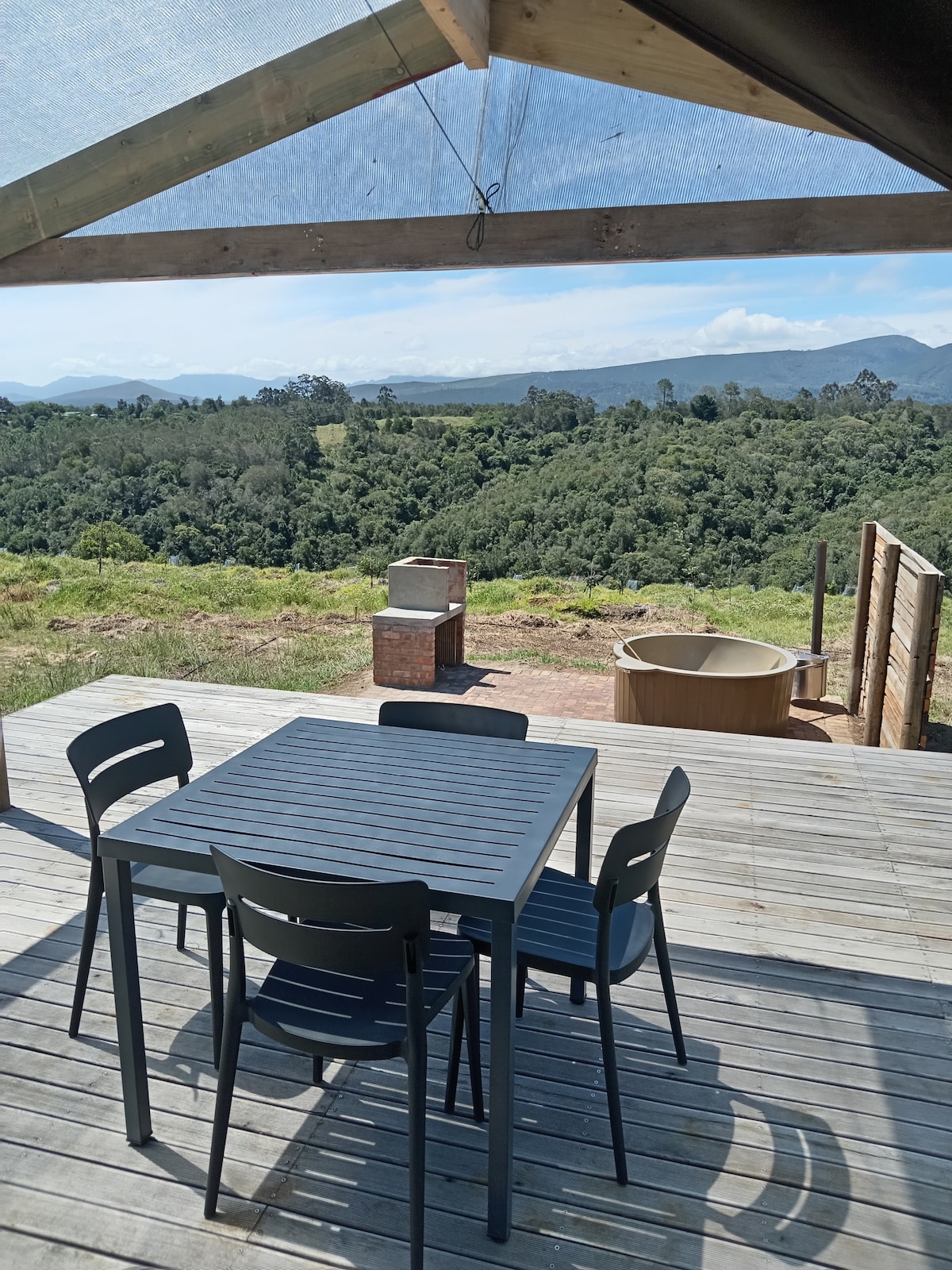 AfriCamps bang in the middle of the uber-popular Garden Route. AfriCamps at Ingwe is situated in the Crags, a lush forest and Fynbos area embraced by the coastal town of Plettenberg Bay where you can experience all the Garden Route is so famous for. Our high elevated tents boast outstanding views of rolling green hill tops surrounded by forested valleys and the Tsitsikamma Mountain Range. Some of our tents have private hot tubs for an extra R300 per night, be sure to check this when booking.