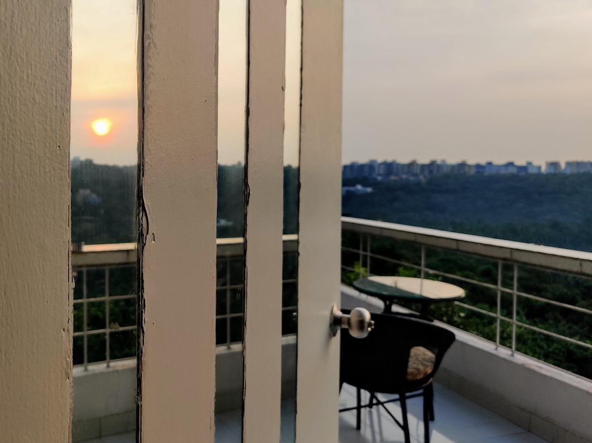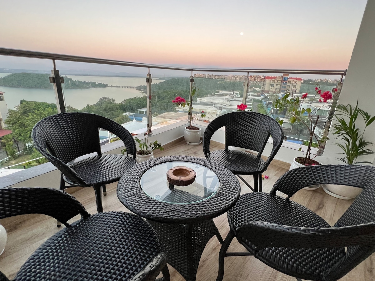 Welcome to "Harmony"- our home provides a peaceful and fulfilling stay. Enjoy the elegance & comfort of a modern well equipped 2-bedroom luxury apartment with state of art facilities set amidst lush green & scenic blues. Equipped with the finest facilities of Gym, swimming pool, squash court, sauna, library and walking tracks, this holiday would give you an enriching experience. Breathtaking view of Zuari river from terrace with an infinity pool transcends you to peace and tranquility.