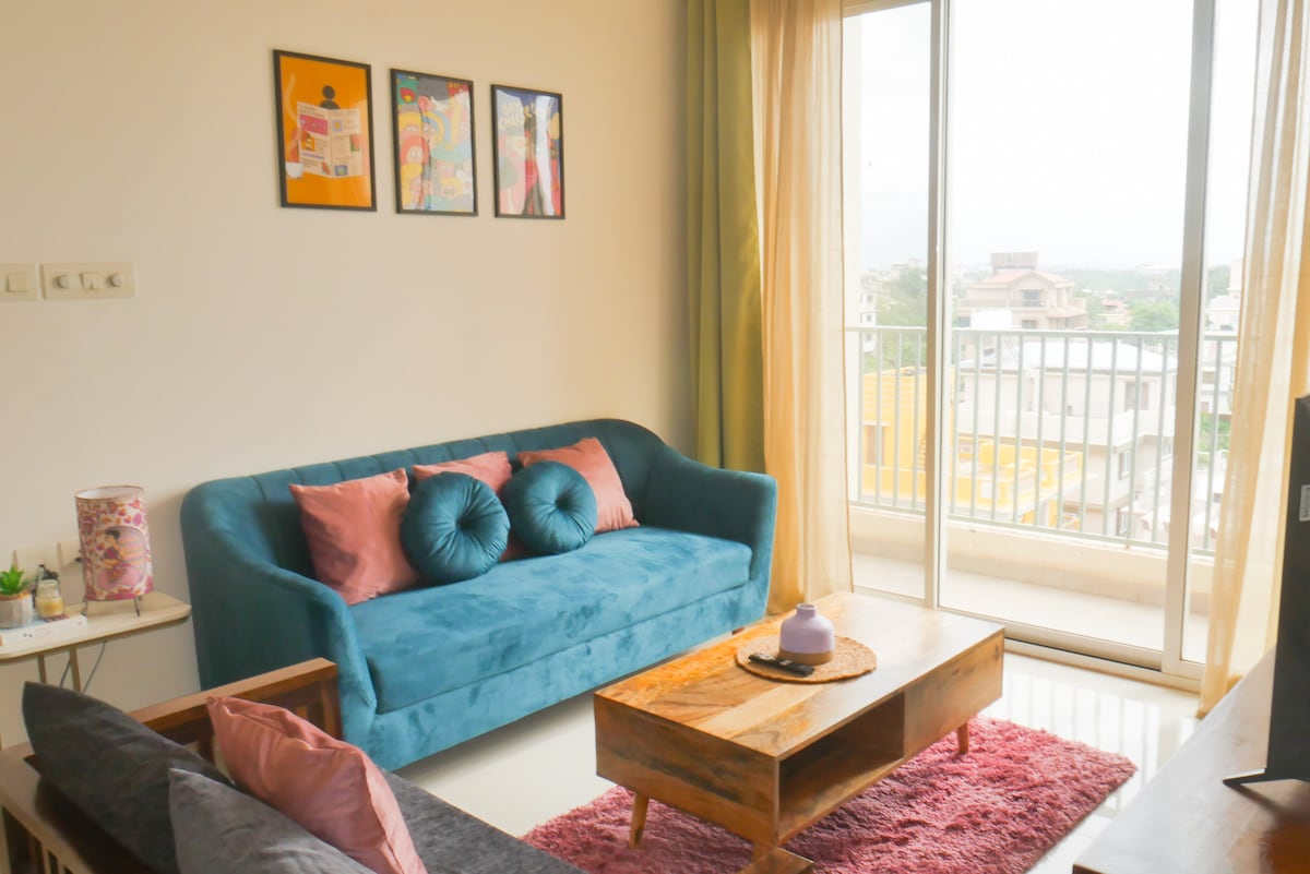 The Sea Breeze is a cosy 2 bedroom apartment in a Tata Housing Complex replete with amenities. It is right next to the airport making both North Goa and South Goa easily accessible. The airport is 10 minutes away and the markets are about 2 to 5 minutes depending on what you need. There is a 30m pool in the complex. This apartment is perfect for a workcation, staycation or a family getaway.