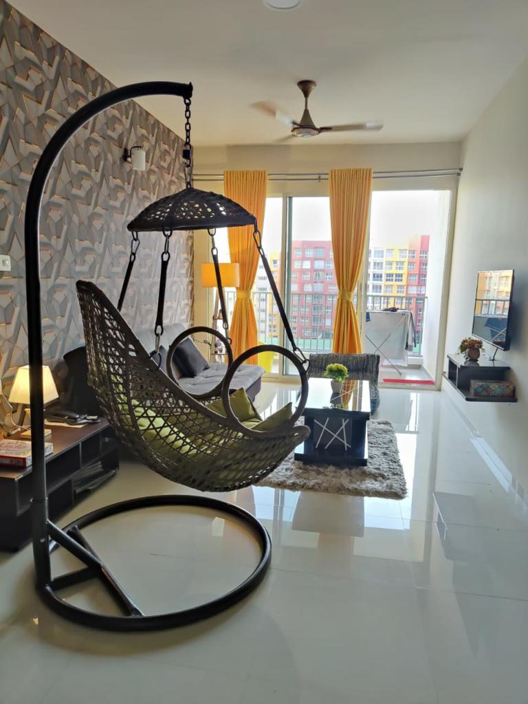 Casa de Davi is a chic & contemporary one bedroom apartment nestled in a premium gated community with a private terrace for you to sunbathe, workout, mediate, relax or have a BBQ! The apartment is fully-furnished and tastefully decorated. It is located in the beautiful, quaint and peaceful neighborhood of Benaulim, surrounded by lush greenery and a beautiful beach close by. The community is part of a resort, covered parking and 24hour security.