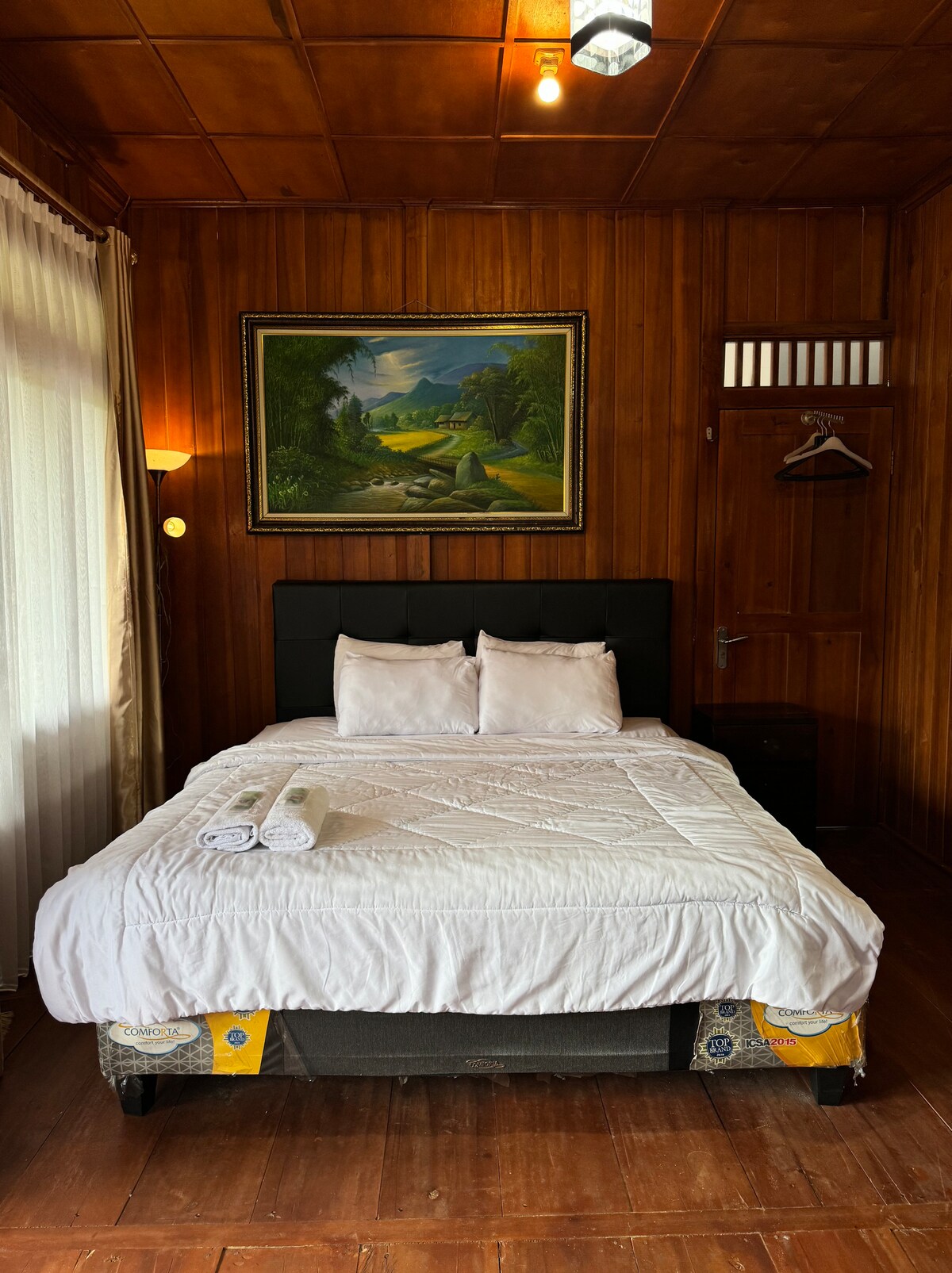 This one cottage with a double bed is one of our four cozy cottages at Birding Cottage Tangkoko. Tucked beside a peaceful stream and surrounded by the lively company of birds. It's the ideal place to relax, reconnect with nature, and immerse yourself in the sights and sounds of nature. While our restaurant continues to grow and a pair of dove nest next to it, take advantage of our soft opening price and book your stay now to enjoy a serene retreat.