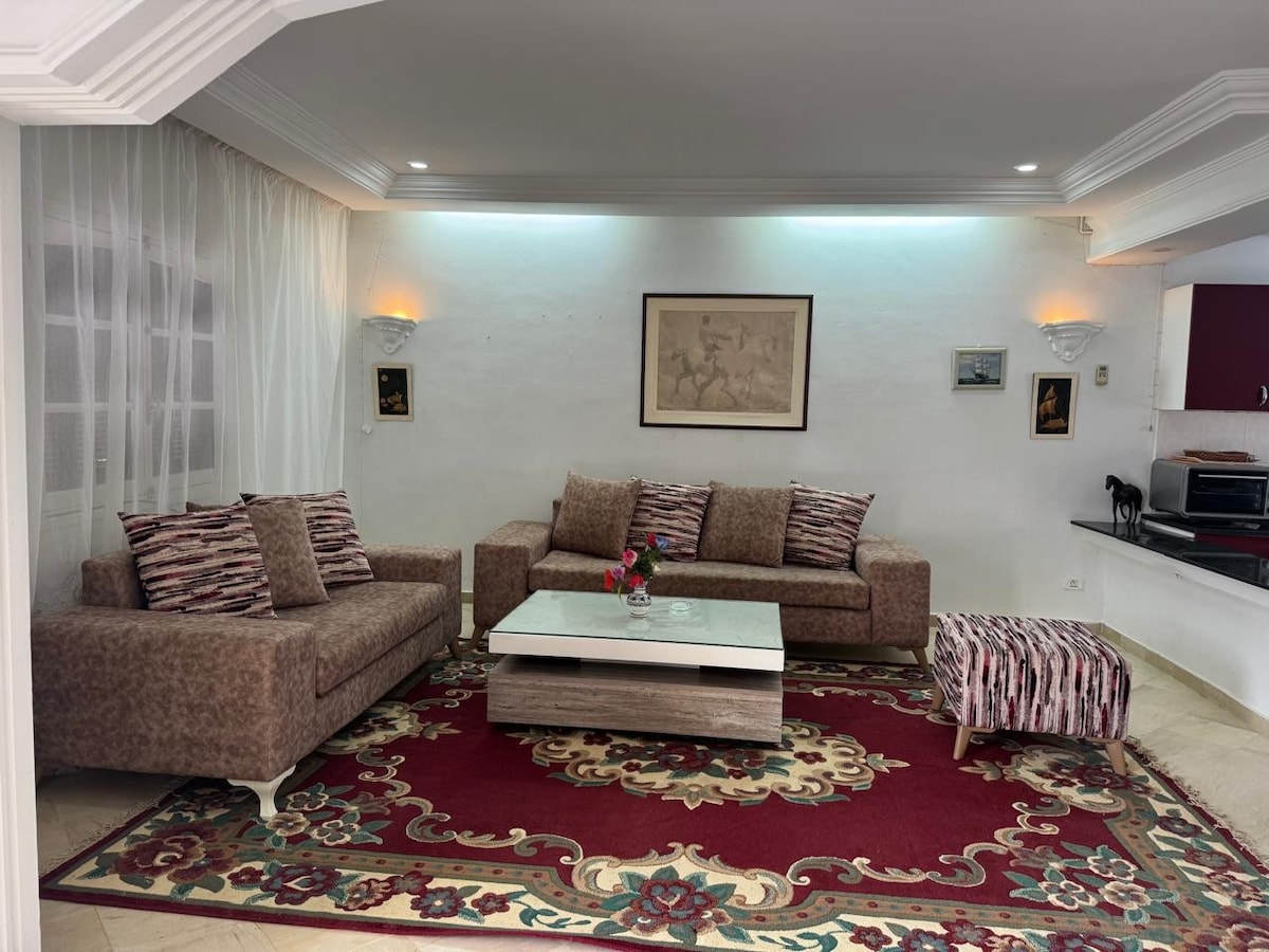 Appartement chaleureux et moderne de 80 m2 tout neuf à 100 m de la mer. Entièrement rénové en 2019 : - S+2 ( vaste salon + SAM+ 2 chambres + cuisine + salle d'eau ) - Appartement doublement climatisé - Double parabole / Ecran plat / Démodulateur numérique (chaine européenne et arabe et plus) - Cuisine bien équipée (frigo, four, micro-onde, gaz, hotte, machine à laver, vaisselle ... ) - WiFi gratuit