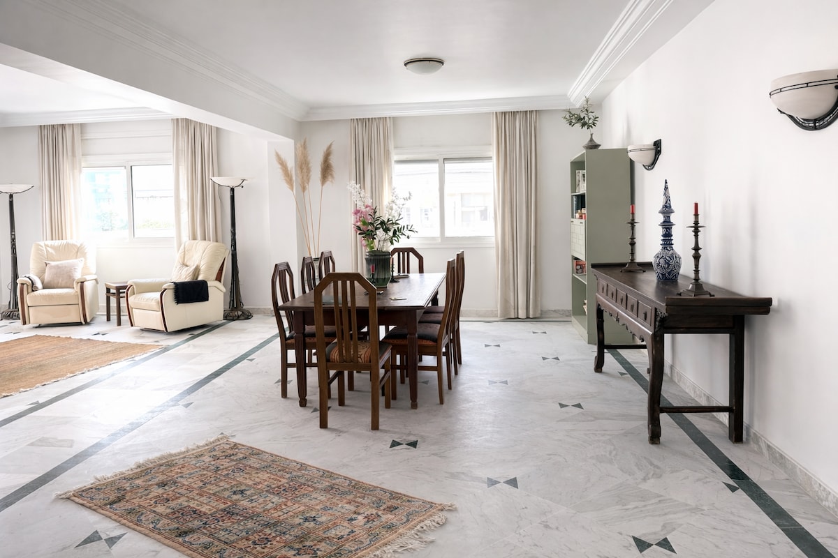 Appartement lumineux et spacieux au cœur de Bizerte, à deux pas du vieux port, de la médina et des commerces. Idéal pour visiter Bizerte dans un cadre calme et agréable. Doté de 3 chambres, salon et salle à manger communiquant, cuisine équipée, salle de bain et salle d’eau. Toutes les chambres sont dotées de balcons et/ou fenêtres avec vue unique sur le canal, le jardin et le pont mobile. Avec un peu de chance, vivez l’expérience unique de la levée du pont et du passage des bateaux.