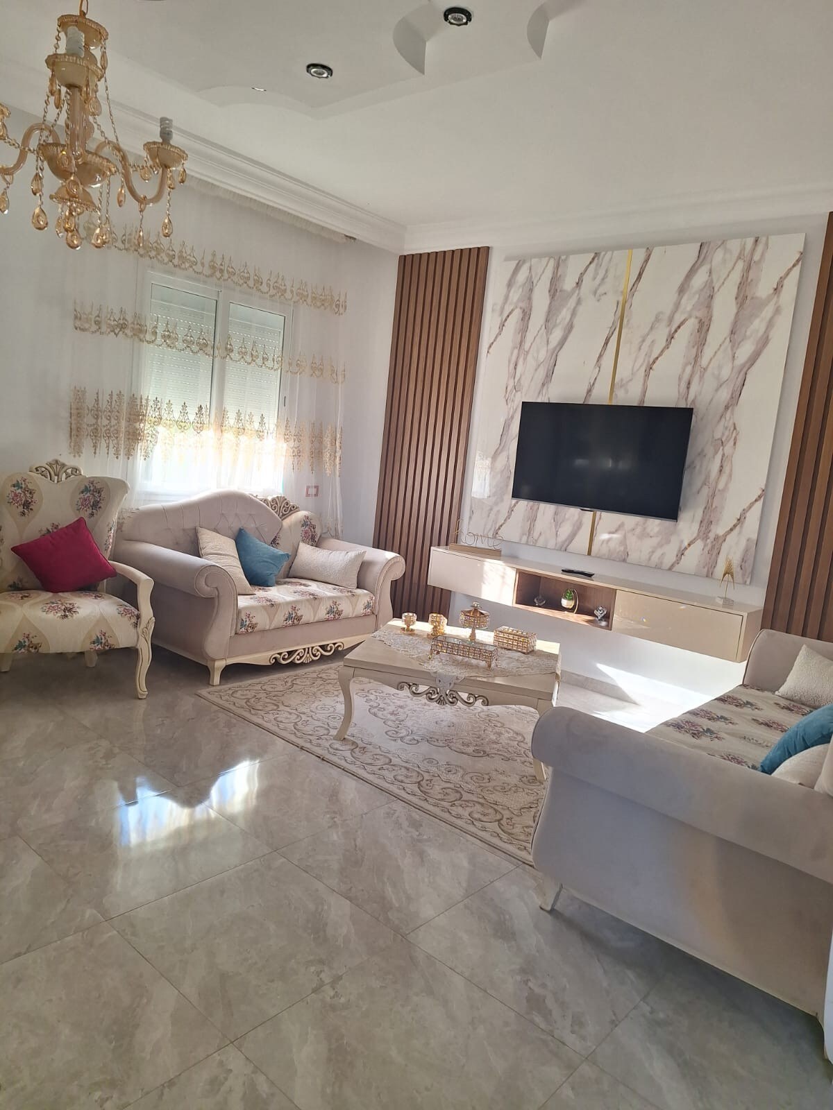 Rent a spacious Upstairs Flat in EL Bhira Bizerte With: - 1 Bed Room - 1 Livings Rooms - Kitchen - 2 bathrooms with 2 showers - 2 terrace With barbecue - TV - FREE Wifi -XBox - 5 min from downtown and 5 min from the beach (Corniche) by car . - Calm Area - Free Car Parking Under security camera CCTV - Swimming pool -Netflix