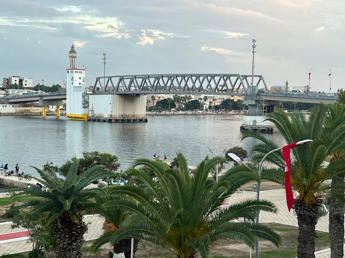 Appartement lumineux et spacieux au cœur de Bizerte, à deux pas du vieux port, de la médina et des commerces. Idéal pour visiter Bizerte dans un cadre calme et agréable. Doté de 3 chambres, salon et salle à manger communiquant, cuisine équipée, salle de bain et salle d’eau. Toutes les chambres sont dotées de balcons et/ou fenêtres avec vue unique sur le canal, le jardin et le pont mobile. Avec un peu de chance, vivez l’expérience unique de la levée du pont et du passage des bateaux.