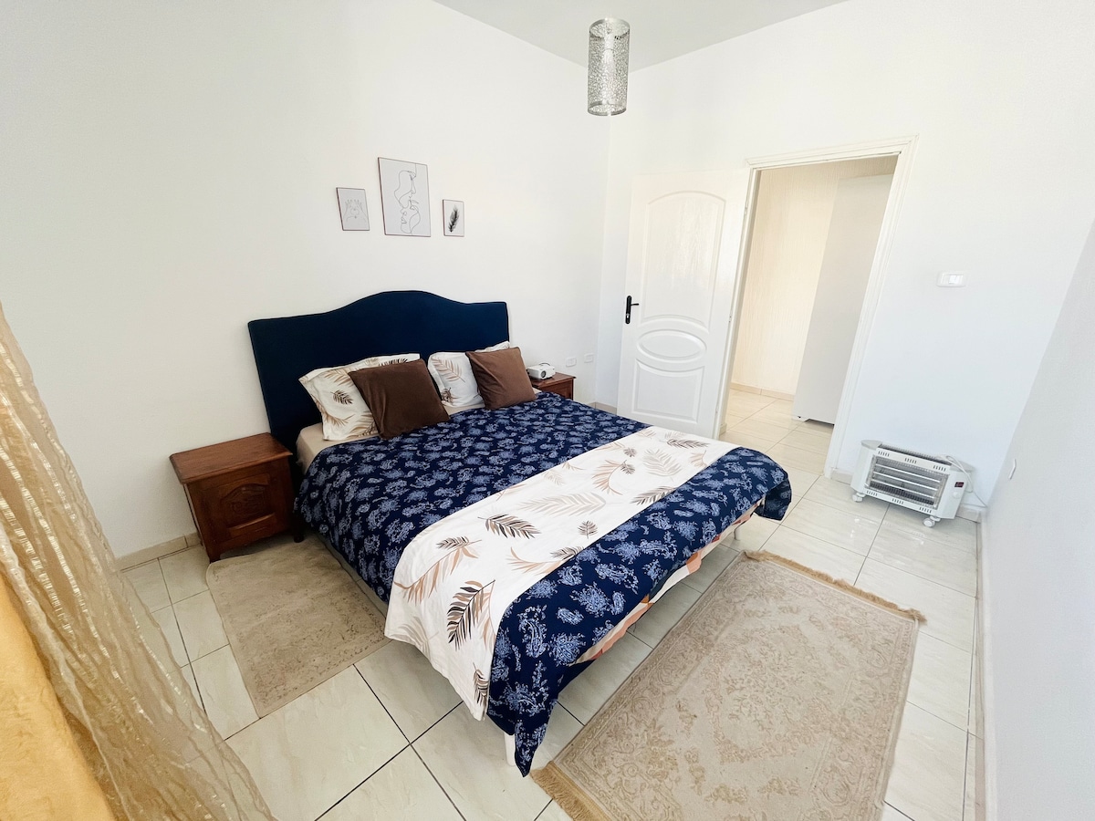 Enjoy a stylish private apartment with king bed and living room with 3 sofa beds , kitchen , balcony , full bathroom , free parking lot , free acres to the hotel pool , and the beach , located inside very nice Andalucia hotel , with great restaurants and reception, conference rooms , coffee shop, gated community, Located 5 min walking from Bizerte downtown , and the old historical point of interest in Bizerte , 24 h security , safe neighborhood, maximum apartments capacity is 5 people .