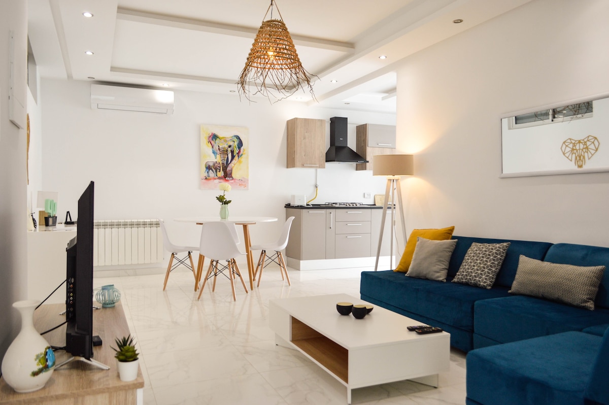 Newly renovated studio "S+0" in the heart of the famous Marsa Plage. Beside both the beach and the central shopping district. Equipments: ●Air conditioning unit ● Central heating system ● Fridge ● Oven ● Wifi ● TV with Netflix ● Newly purchased compact washing machine. However, please note that I will be happy for our housekeeping to provide you with a laundry service free of charge. ● Coffee machine ● Electric juicer ● Hair dryer ● Clothes iron...