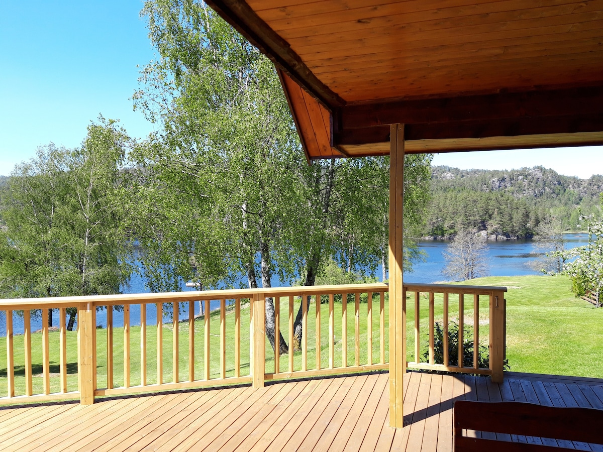 Eksklusiv tretopphytte usjenert i vakker natur. Kun 15 kilometer fra Kristiansand sentrum. Her kan du sitte og lytte til naturen og når kvelden kommer er det kun månen og stjernene som lyser opp for deg! Få kontakt med naturen igjenpå dette uforglemmelige overnattingsstedet. Hytta ligger helt ved vannet, det følger to kanoer med og det er også en solid robåt. Badstuen som ligger ved brygga kan bestilles om ønskelig. Fri parkering ca 150 meter fra hytta. Fin fisk i vannet, trenger ikke fiskekort.