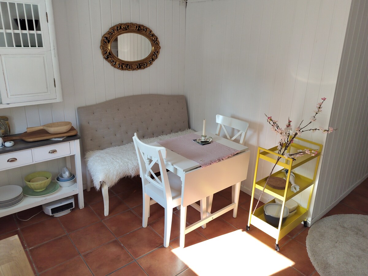 Cozy guest house (24m2). Small private space by the ocean with sunbeds and bathing facilities in the summertime. Simple kitchen facilities for making breakfast and lunch . Small beaches and hiking areas in the local area. 12 minutes drive to the center and 10 minutes to Dyreparken. 12 minutes walk to the bus. Mandatory washing NOK. 300. You have to bring your own bedlinen and towels. Minimum 2 nights rental.