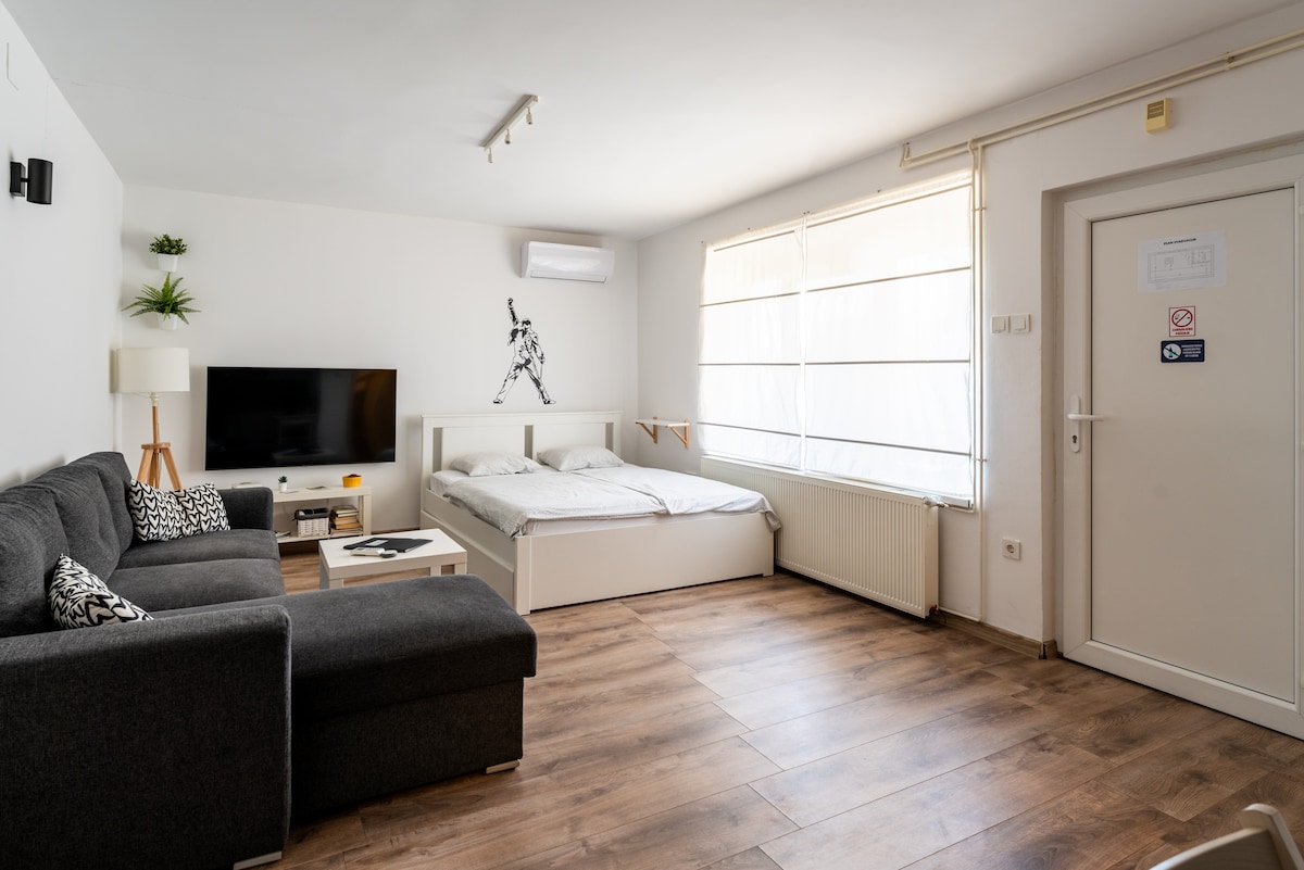 Uživajte u elegantnom uređenju ovog smještaja u centru Virovitice. Ulaz u zgradu i u sobe je sa šifrom koju Vam prethodno šaljemo u poruci. Klimu i bojler ćemo daljinski uključiti kada se najavite. Prethodno smo detaljno očistili sobu, zamijenili posteljinu, ručnike, opskrbili minibar,... U sobi je udoban king size bračni krevet, ogroman TV, minibar, 2 barske stolice, te moderno uređena kupaonica sa tušem i WC-om