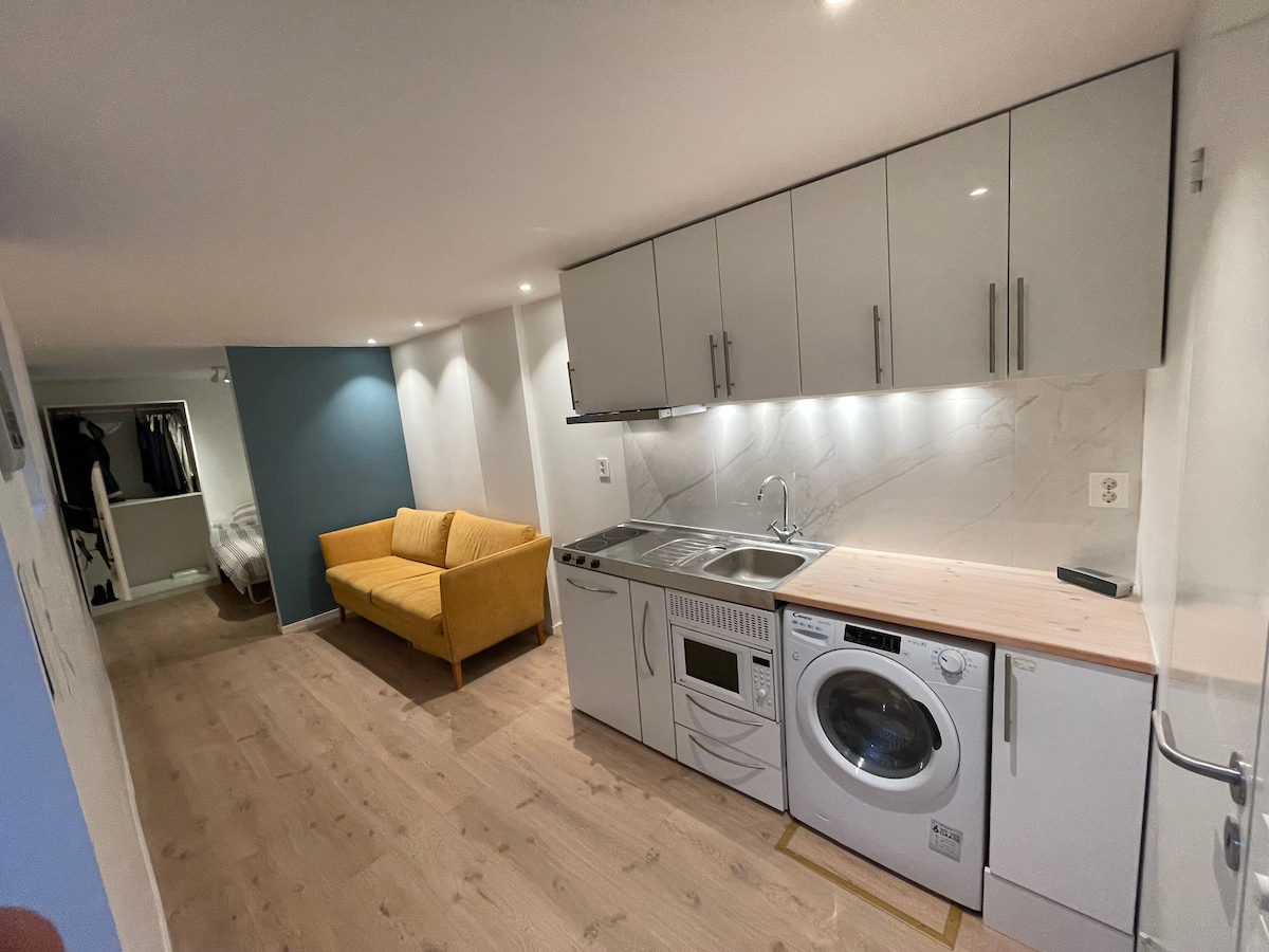 Liten koselig hybel leilighet for 1 person, men med plass til 2. 1 rom med åpen kjøkkenløsning og eget bad. Liten dobbeltseng 120x200 cm. Nivåforskjeller i leiligheten, og liten trapp ned til inngangsdøren. Omtrent 15 min. med bil til Bergen sentrum eller Bergen lufthavn. Det er 200 meter til nærmeste busstopp der buss går ca 1 gang i timen. Du kan ta buss til Nesttun og Bergen light rail videre til sentrum eller Bergen lufthavn. Ca. 45-50 minutter med kollektivtransport til sentrum.