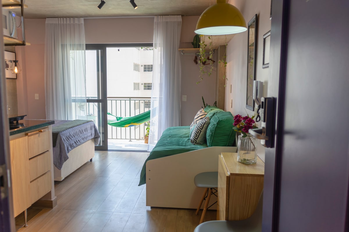 「Senses Vila Madalena」单间公寓,带绿色阳台