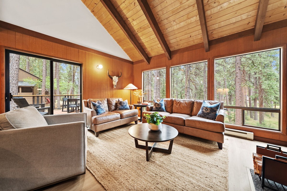 The Ridge Haus is our family's home away from home. The perfect place to breathe in the fresh pine scented air, exhale and explore with family and friends. We sought out to create a comfortable and cozy space to gather and relax with all of the comforts of home. Newly updated bathrooms, comfy beds, and designer touches offer complete respite amongst the trees in beautiful Central Oregon. **Please Note** The wood burning fireplace is currently nonoperational.