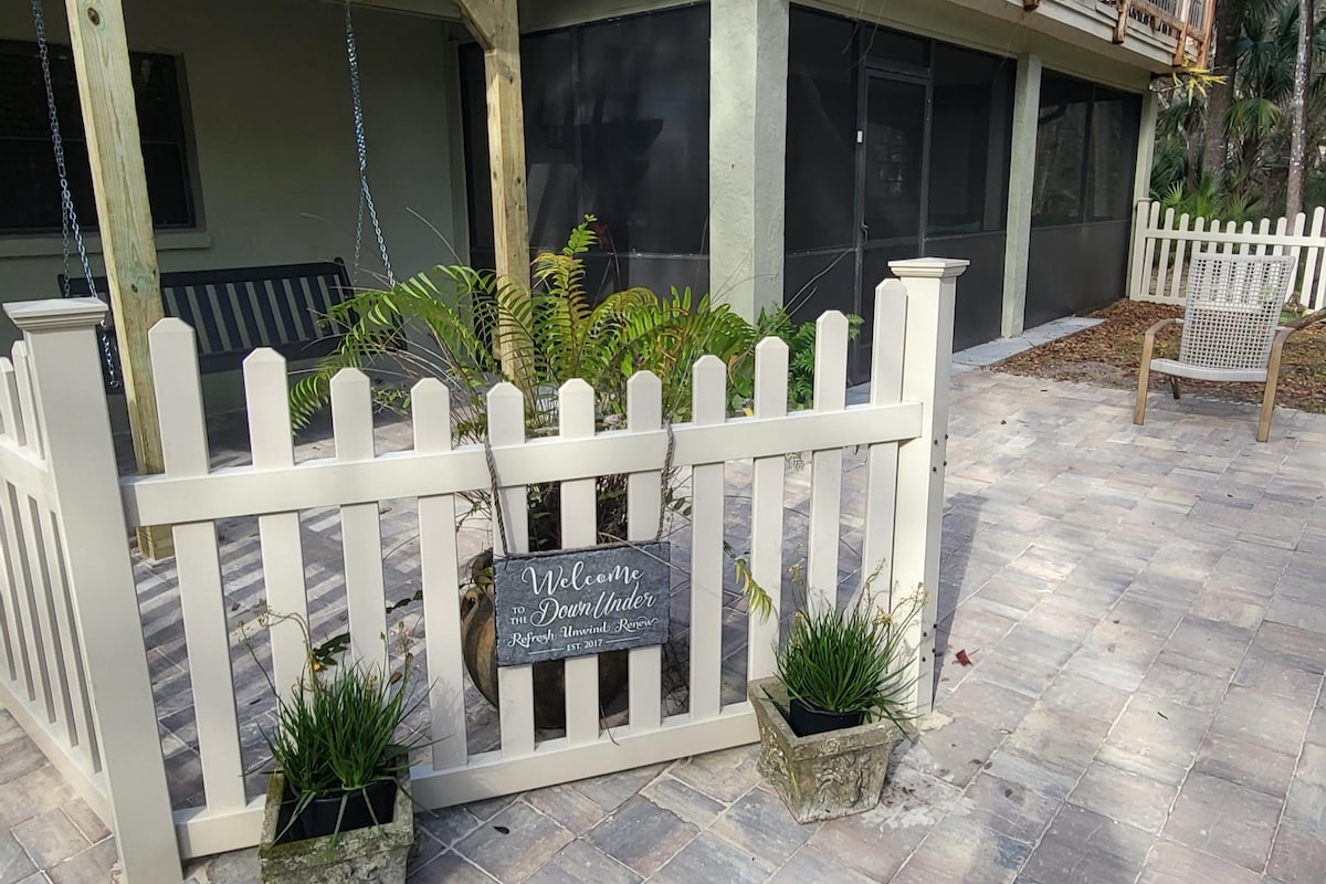 Enjoy the lovely setting of this romantic spot in nature. This is a perfect romantic retreat but would also be a great place to unwind on a solo journey. Sit on the shaded-open patio and enjoy the fountain and nature. Biking and hiking trails, boating, fishing, relaxing, and/or exploring are all available here. Among others, visit Rainbow River, The World Equestrian Center, Hernando Lake, and Crystal River. Dine on the water at Stumpknockers, Blue Gator, or Stumpys restaurants.