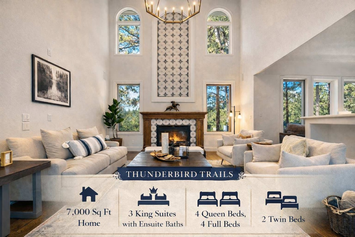 Stay in our Newly Built Family Home ✔ 4,800 sq ft Home, Perfect for Longer Stays & Families ✔ Professionally Cleaned & Sanitized ✔ 6-person Hot Tub, Gas Fire Pit & deck with Mountain Views ✔ King Size Bed 🗲Fast WiFi - Ideal for Working Remotely ✔ Fully Equipped Kitchen Upstairs, Kitchenette Downstairs ✔ In-Suite Washer & Dryer ✔ Theater Room with Complementary Netflix on all TVs ✔ 15 Minutes from USAF Academy We know you'll love your stay. Book today to reserve our beautiful home in the woods!