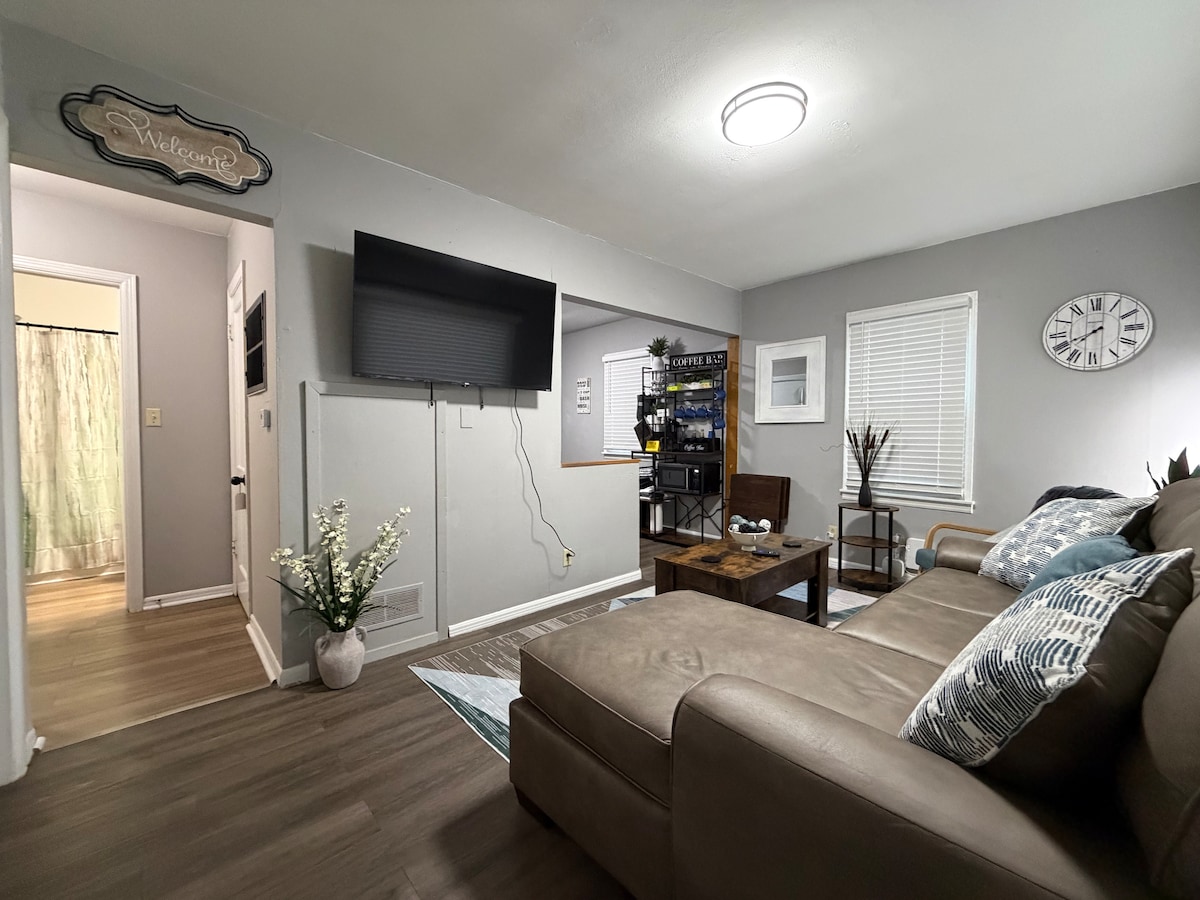 Discover the perfect getaway in this charming 1 bedroom, 1 bath townhouse, ideally situated just blocks from downtown Waterloo. Accommodating up to 4 guests with a pullout couch. Enjoy the convenience of a washer/dryer and a delightful coffee bar to kickstart your mornings. With a window A/C unit to keep you cool and a vibrant array of restaurants and nightlife just steps away, this is your ideal home base for relaxation and exploration. Book your stay today and experience the best of Waterloo!