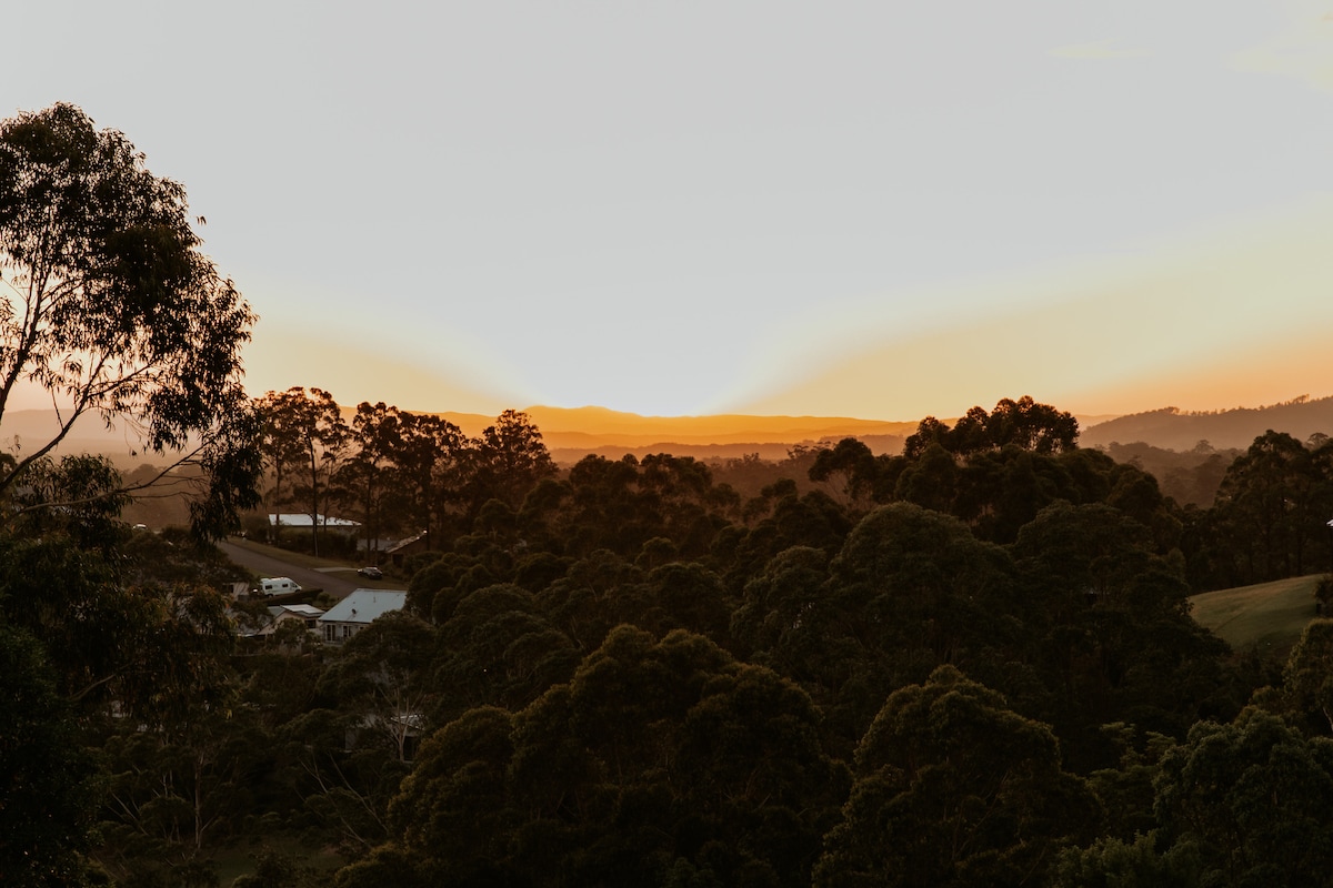 Dark Horse provides stylish self-contained villa accommodation near forest and beaches on the stunning Barrington Coast, NSW. Set on our 10 acre farm on the site of an old dairy, we've built a unique one bedroom retreat including some of the original timbers to create an airy open plan space opening onto views of the small valley and paddocks, picking up the sea breezes. We're located just 8kms north of Nabiac on the Mid North Coast, just off the Pacific Highway. Forster is a 10 min drive.