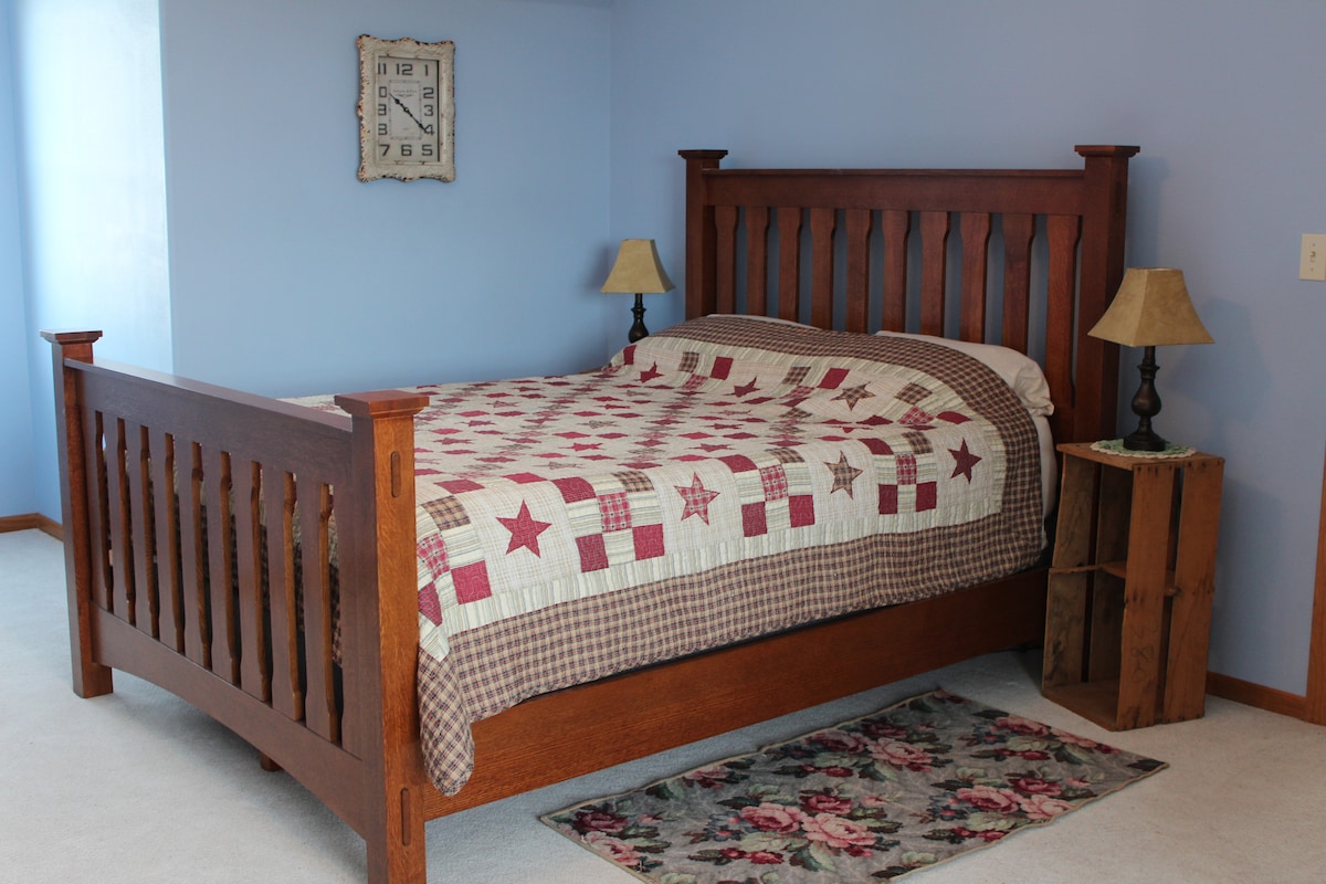 Our farm's only bnb, "The Roost," offers a clean, modern, & fun space to stay. Located in the lower walkout level of our home, it's similar to a suite. Offering 575 sq. ft. of private, clean, well maintained living quarters include, a kitchen, a cozy living space, w/twin sofa bed, & a spacious bed & bathroom. Chickens just outside your door to greet you a "rise & shine" morning & flowers everywhere. Our seasonal gardens are open for you to enjoy picking organic food, along with farm fresh eggs.