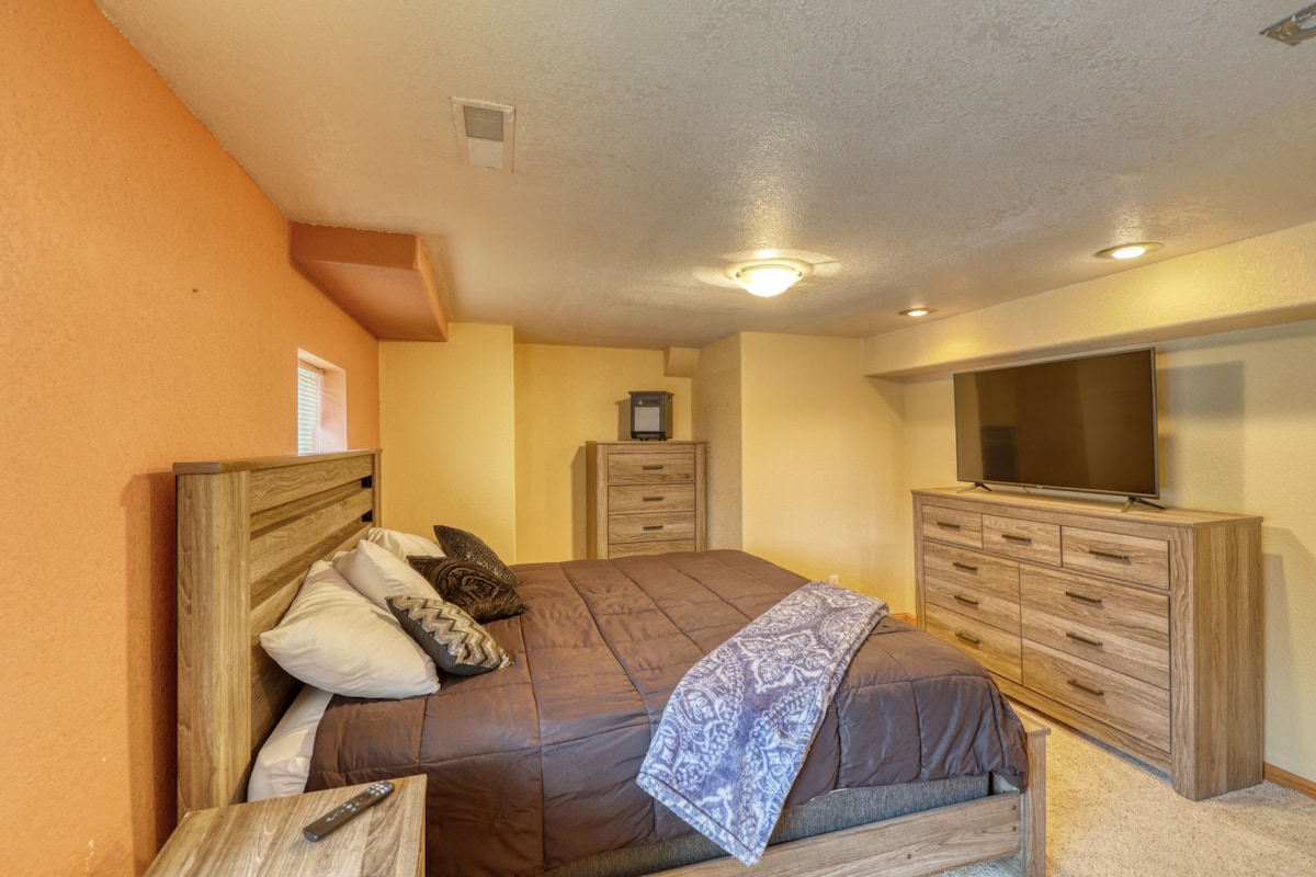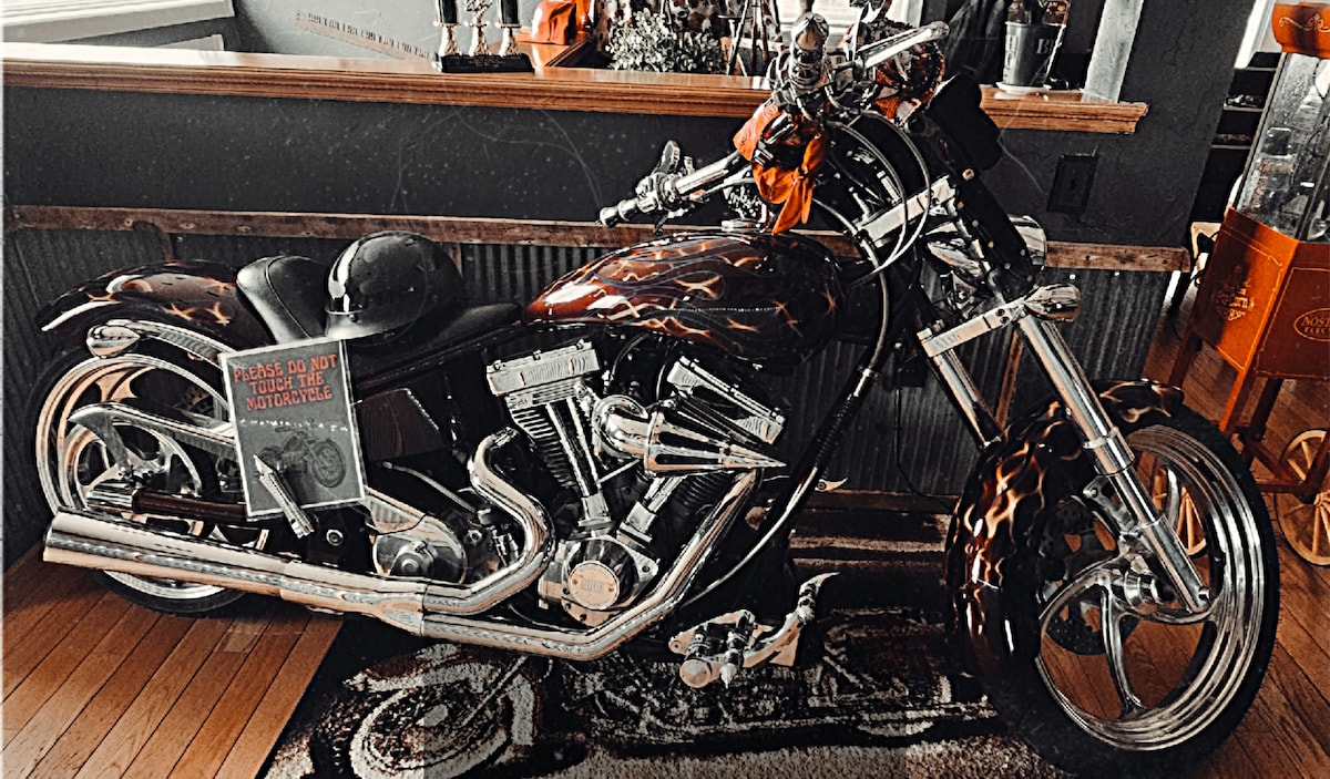 Just 1 mile from downtown Sturgis and under 20 minutes to Deadwood, this spacious 5-bedroom home blends rustic, Western, biker, and medieval charm. Perfect for riders, families, bachelorettes, or weekend getaways, it sleeps up to 14 with 8 beds. Enjoy 3 full baths, indoor jetted tub, BBQ, propane fire pit, and a garage for 10+ bikes with lift and air compressor—your ideal home base for rallies and summer events.