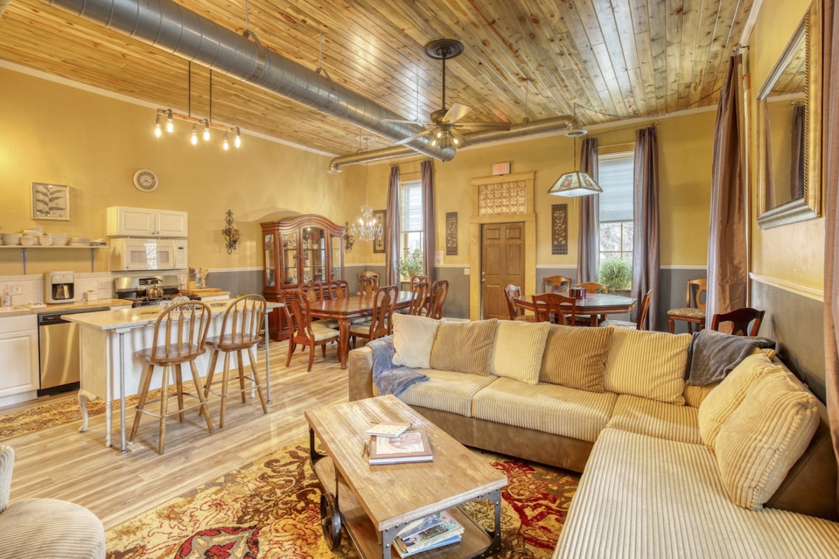Rise 'N Shine brings you a newly updated loft home with 3 bedrooms (3 queen), 2.5BA, huge garage with bar, loads of parking, & 3 sliding glass doors that lead to the 40 foot balcony overlooking Main St Sturgis! This is a super fun and convenient spot that makes for an amazing vacation experience whether you're a family with kids, friend groups, or couples! Proximity to attractions & surrounding towns is impeccable with Mt Rushmore 45min, Deadwood 15min, Spearfish Canyon 15min, & Custer 1hr 15min