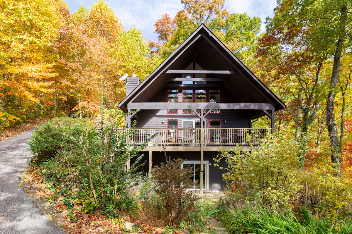Cozy yet sleeps 8! Views 5*! Recently remodeled kitchen and bath.Stay in the coziest yet spacious A-frame in the charming village of Little Switzerland (55 min from Asheville) breathtaking views from the hot-tub on deck - 5 minutes from Blue Ridge Parkway hiking and Crabtree Falls! Plenty of space for the families with pingpong table & foosball & bball hoop. We ARE NOT suitable for children <5 due to the spiral staircase/deck. NOpets.Winter note:4 wheel/all wheel best for adverse weather