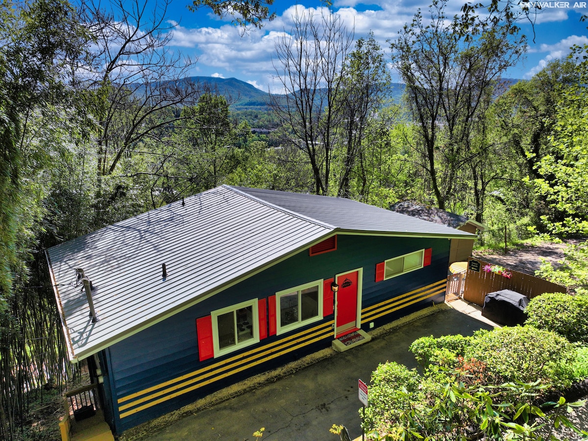5-star 1960s unique mountain cottage that is just 1.2 miles from downtown Asheville. Located on Beaucatcher Mountain, this charming home sits on a narrow switchback road above the famous mountain tunnel heading into downtown Asheville. The home is secluded on a mountain top with beautiful views, offers hiking opportunities and occasional bear sightings, yet it is still only a 5-minute drive to downtown. It really is in one of the best locations in the entire city of Asheville!