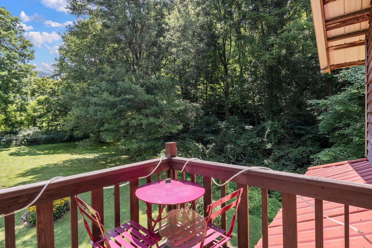 A peaceful oasis for whatever kind of travel you have planned! Come enjoy this bright and inviting space. The 2BR apartment has a modern yet cozy style with tall ceilings, comfortable mattresses, and a fully outfitted kitchenette, with a private 2nd floor entrance. Enjoy gorgeous mountain views and the babbling stream! Close to Weaverville (5 min), downtown Asheville (15 min), and skiing (30 min). All the privacy you want, yet convenient to amenities. Family friendly. You will love The Nest!