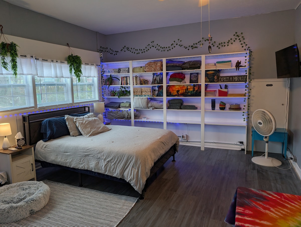 Discover this cozy Boho carriage house in Black Mountain, perfectly located just 3 minutes from downtown, 10 min to Montreat, and 20 min to Asheville, Biltmore and fall foliage on the Blue Ridge Parkway. Nestled in a tranquil setting, our charming retreat features stylish interiors and a comfortable queen bed. Ideal for couples, friends, or solo travelers, you can explore Black Mountain's shops, restaurants, hike nearby trails, or enjoy Asheville's vibrant arts and culture scene nearby.