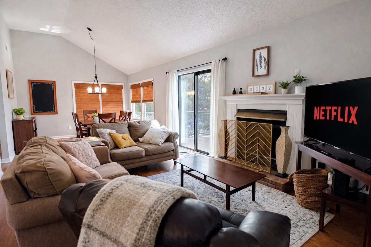 Relax at the only vacation rental directly on quaint Lake Tomahawk and trail, located in the heart of Black Mountain. 20 min to downtown Asheville and 5 minutes to historic Montreat. Perfect for a couple’s getaway or a multi-generational family vacation, enjoy dinner overlooking the lake on the massive covered patio. A 4-block walk into downtown BMT. Sleeps up to 17, giant hot tub, fully stocked kitchen, Tesla charger! Recently renovated, stylish, luxurious. Your perfect getaway awaits!