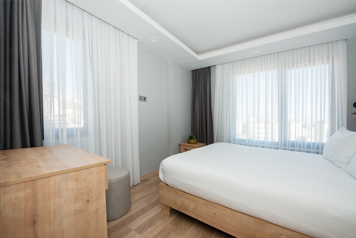 You will not be far from the comfort of your home during your stay in this large one-bedroom apartment with an additional seating area, an integrated kitchenette, and a spacious bathroom , which is located on the main street in the center of the famous Sisli area. In this apartment located in our hotel, we have a reception 7/24 , the entire hotel is monitored by a camera security system that operates 24 hours a day, 7 days a week. We also have a big elevator in the hotel.