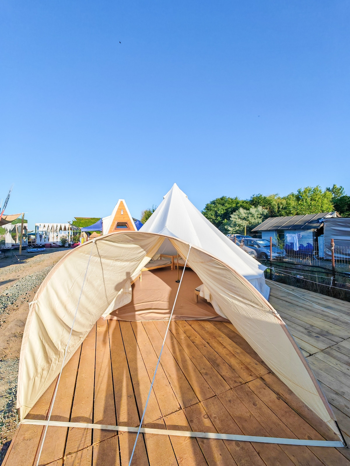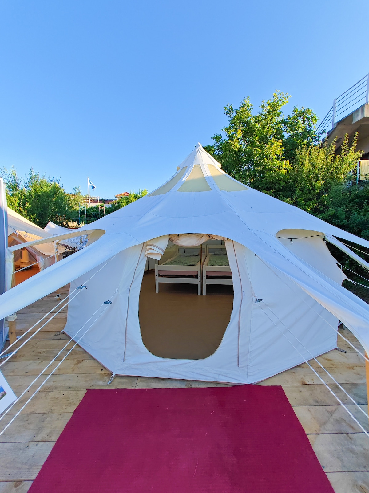 Комплекс от специално оборудвани глемпинг палатки, разположен в прекрасното селце Тюленово! Възобновете връзката си с природата по време на тази незабравима почивка. Комплексът разполага с пет палатки с диаметър 4 метра, всяка от които е обзаведена с удобен двоен матрак и е подходяща за двама възрастни. Обявената цена е за една палатка. Комплексът има две бани и две тоалетни, външна кухня с барбекю, зона за релакс , голяма зелена поляна и зеленчукова градина.