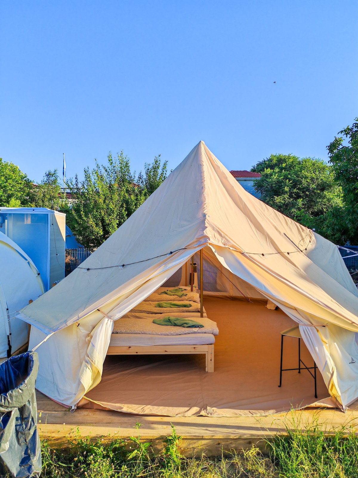 Experience the magic of beachside camping with comfort and nature! Stay in a cozy tent set up next to our caravan in a vibrant, well-equipped campsite just steps from the sea and a beautiful river, perfect for fishing, relaxing, and reconnecting with nature. Free Wi-Fi and parking A scenic river nearby, ideal for fishing and peaceful walks Wake up to the sound of the sea, enjoy a coffee under the sun, and spend your days surfing, fishing, or exploring the coast.