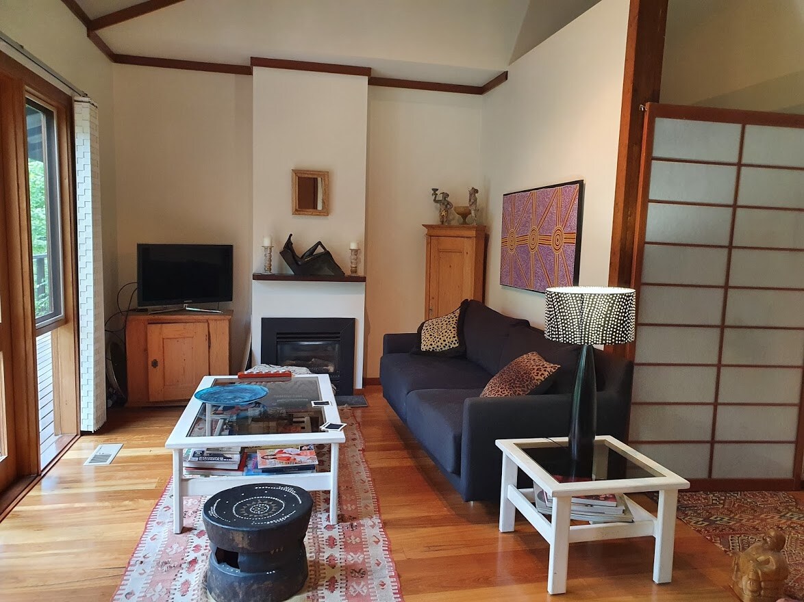 Our guest apartment is a peaceful, bright, private space with undercover parking and entry from the carport. Situated in a quiet street in walking distance from Wentworth Falls Lake, and easy drive to all the main sights of the Blue Mountains. We have a luxury bathroom with a fabulous shower with a heated floor. There are also comfy chairs in the sitting room/ kitchenette. Reverse cycle air conditioning will keep you warm in winter and cool in summer. Note: we’re not set up for small children.
