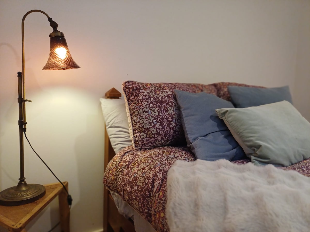 This accommodation is ideal for those who prefer the rustic charm of a historic property over modern comforts. Warm and cosy in winter, the studio was once a purpose-built kitchen of a house built in 1888. Separate entrance. Recycled furniture, large bed, sofa, original fireplace and bathroom with shower cabin. Tiny veranda and a kitchenette, shared patio. NO KITCHEN. To use the fireplace, please BYO timber. For groups of 4 PLEASE CHECK OUR TINY COTTAGE next door.