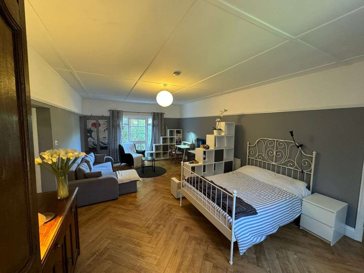 豪华大型单间公寓,带停车位和花园