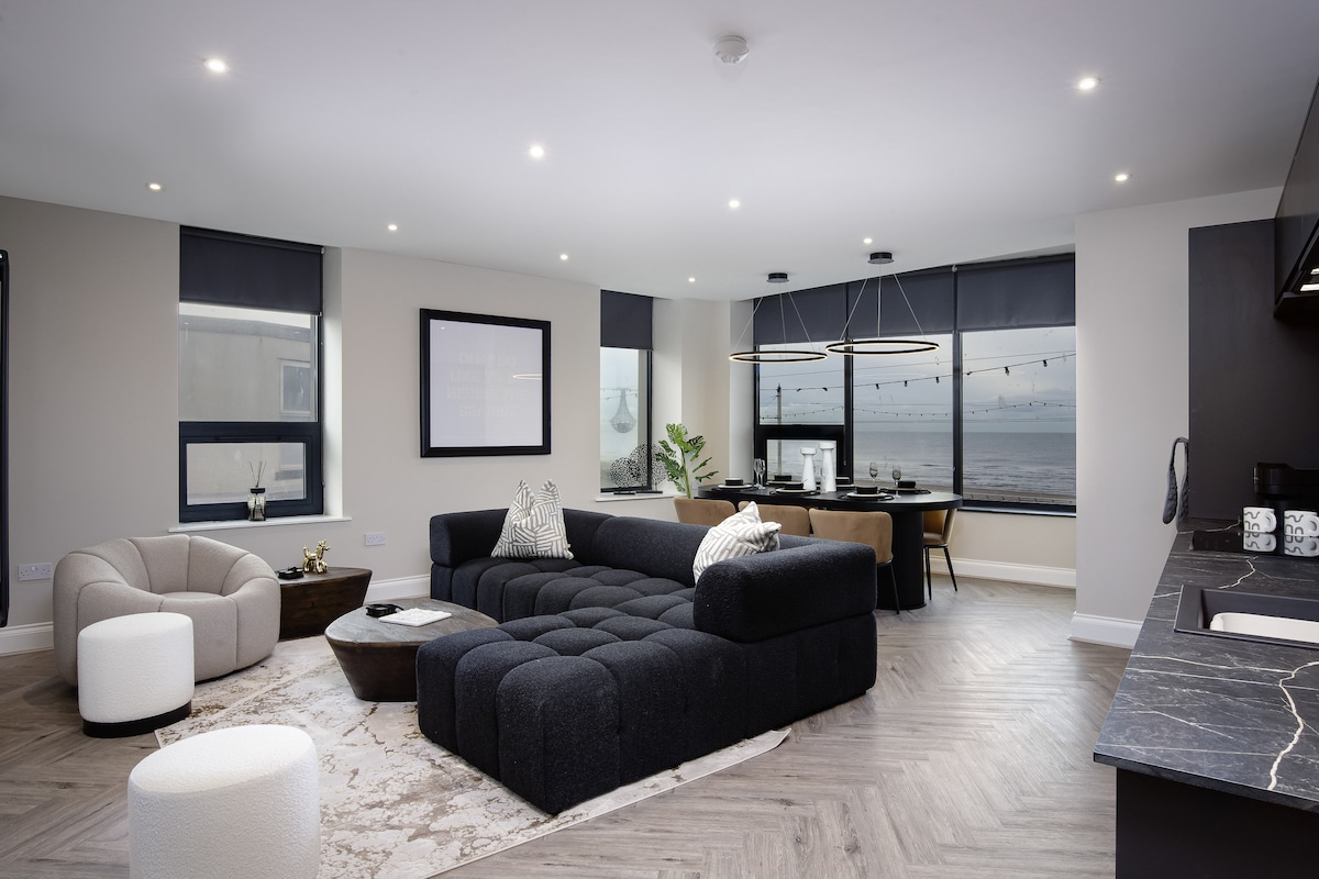 *Featured Airbnbs Top 10 most wish-listed homes in the UK! *Used by the cast/crew of Star Wars series 'Andor' whilst filming *5 minute walk to town centre, shops, restaurants bars! *10 minute drive to Blackpool North Train Station, 20 minutes to Blackpool Pleasure Beach. *Free parking for 2 cars *Beachfront/Seaview! * Roof top terrace, Hot tub/Cinema Room/ *Bar / Sun lounge with stunning sunset views, and Balconys.