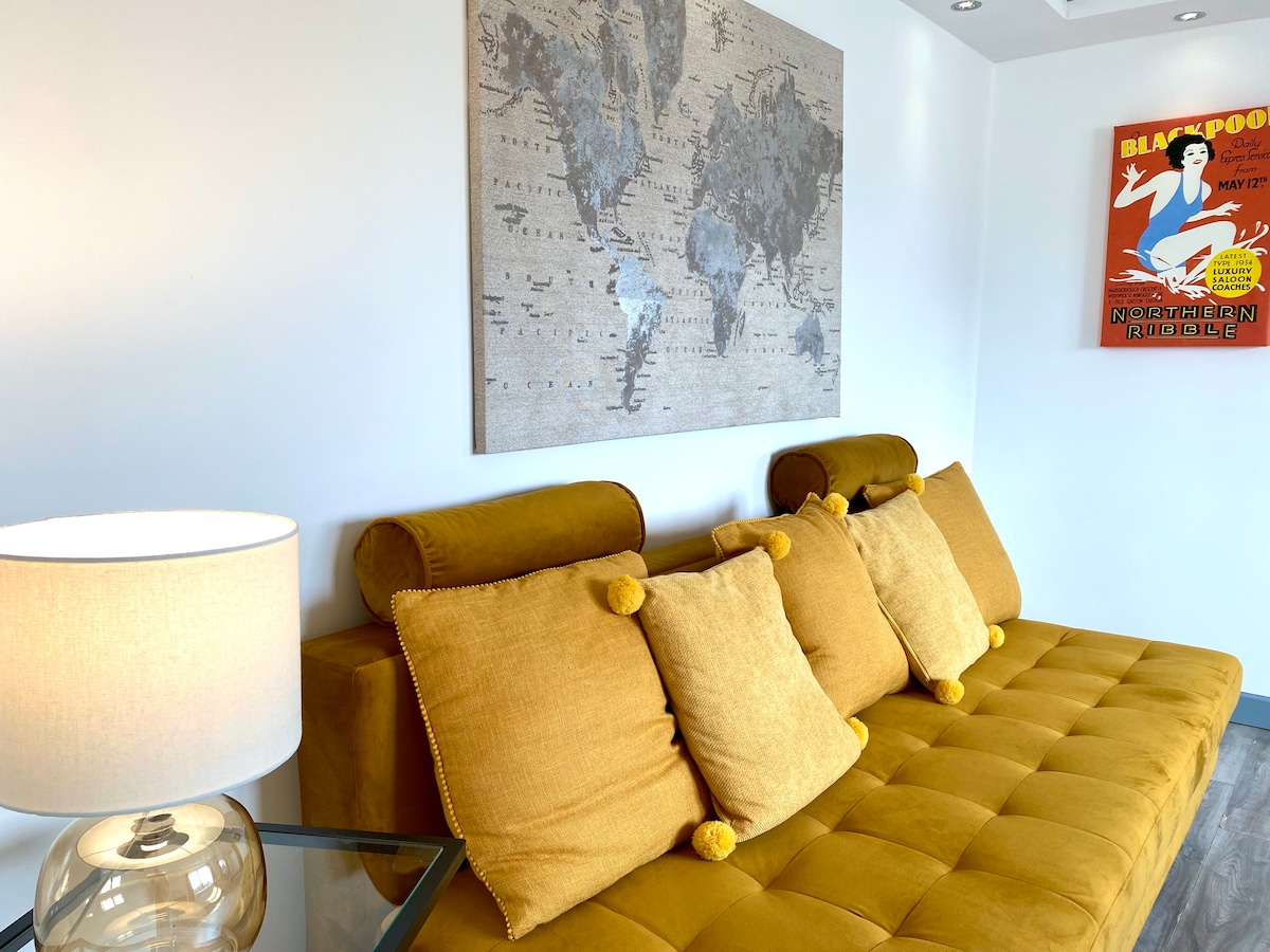 舒适的1卧室布莱克浦公寓|沙发床、厨房和无线网络