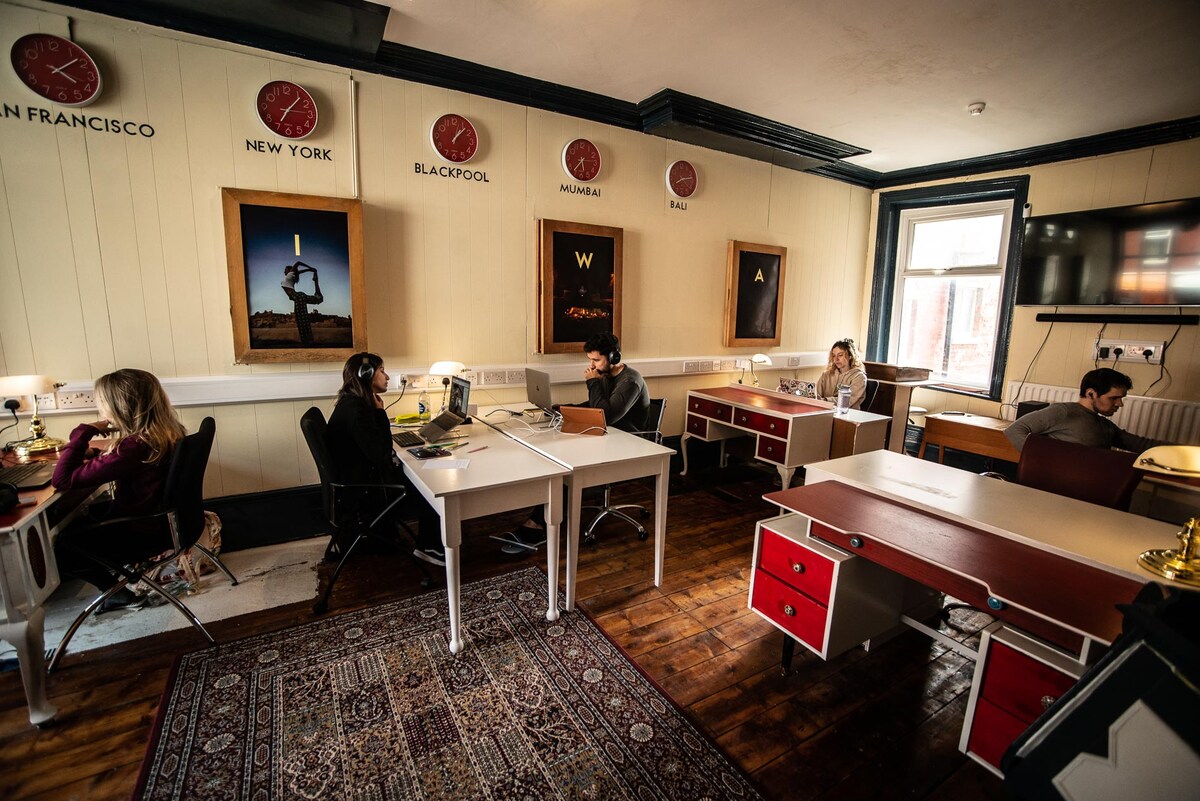靠近海滩的数字游民房源。共享工作空间,共同生活