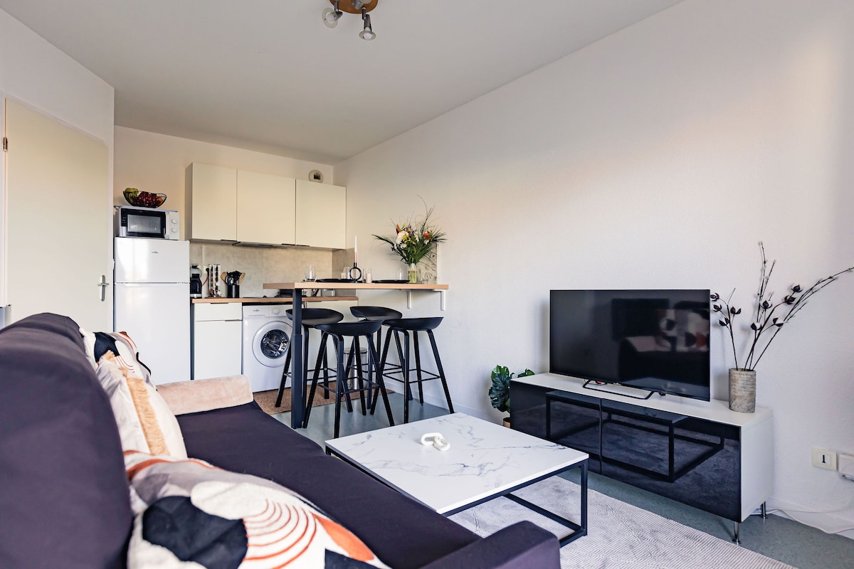 Simplifiez-vous la vie dans ce logement paisible et central. Appartement cosy et cocooning de 33m² au 3eme et dernier étage avec ascenseur dans une résidence calme. Idéalement situé à 5 min de l'aéroport en voiture,1min à pied du tramway, et accès direct au périphérique. Parking libre devant la résidence.