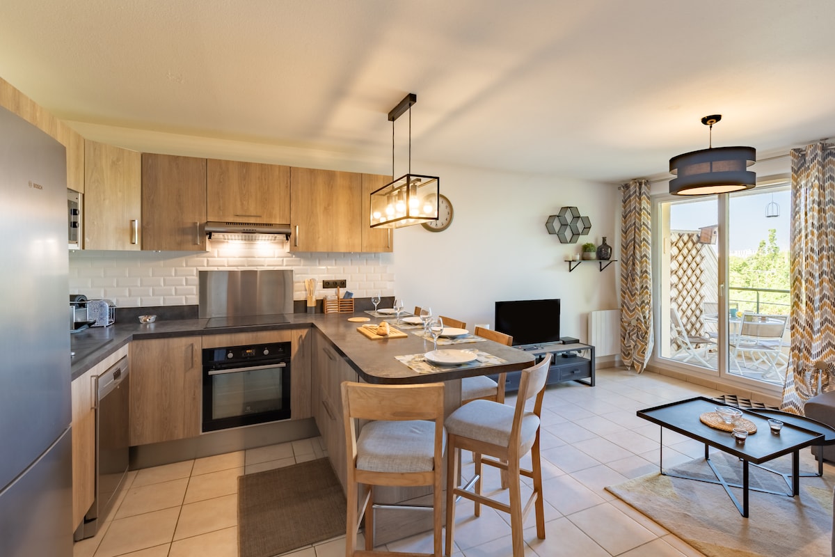 Merci de bien parcourir l'annonce, vous y trouverez beaucoup d'infos 😊. Je reste dispo si vous avez des questions ! Bienvenue dans ce T2 de 42 m², situé près du vieux Blagnac, à 5 min de l'aéroport ✈️, sans les nuisances. Parfait pour un séjour en couple ou pour des déplacements professionnels. Idéal pour 3 adultes ou 2 adultes / 2 enfants ✅ Linge et premières doses de café fournis ✅ Wifi fibre ultra-rapide ✅ Arrivée autonome pour plus de flexibilité 🔑