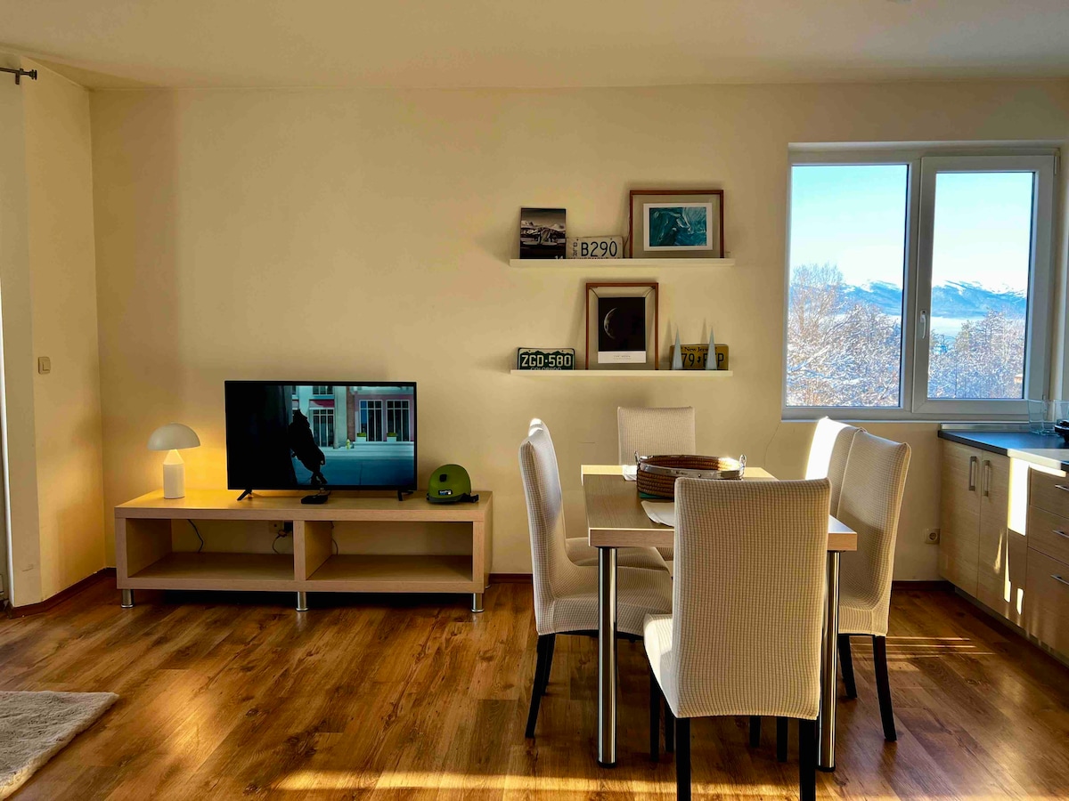 This cozy one bedroom home allows you to enjoy fresh air and beautiful view from the mountain, quiet and peaceful rest while still being close to the buzz and of course, skiing in the winter. We have 5G Internet 100mbps speed installed so you can work from home if needed. You'll have a real Bansko home experience here as we do ourselves and we will share many tips with you!